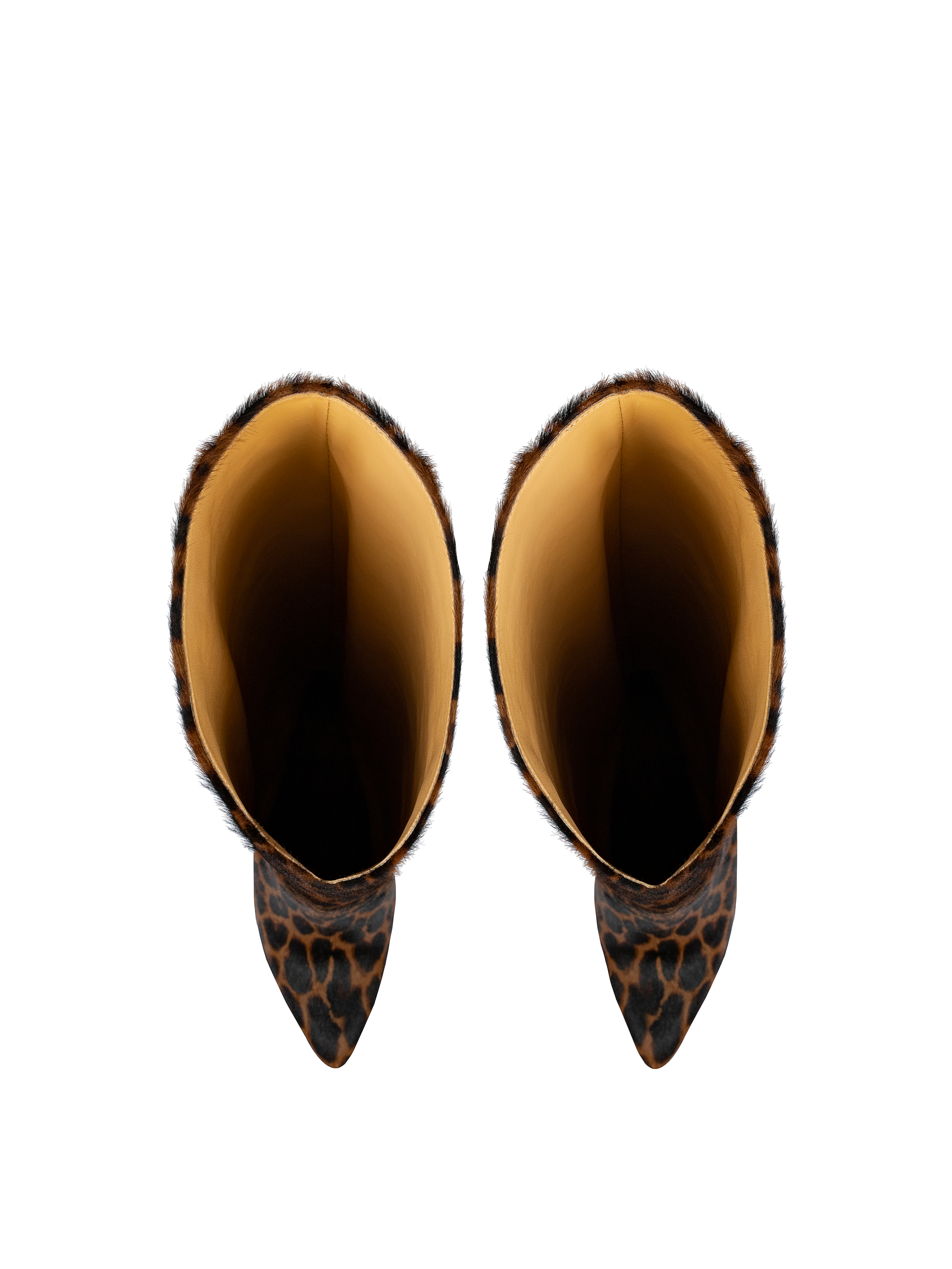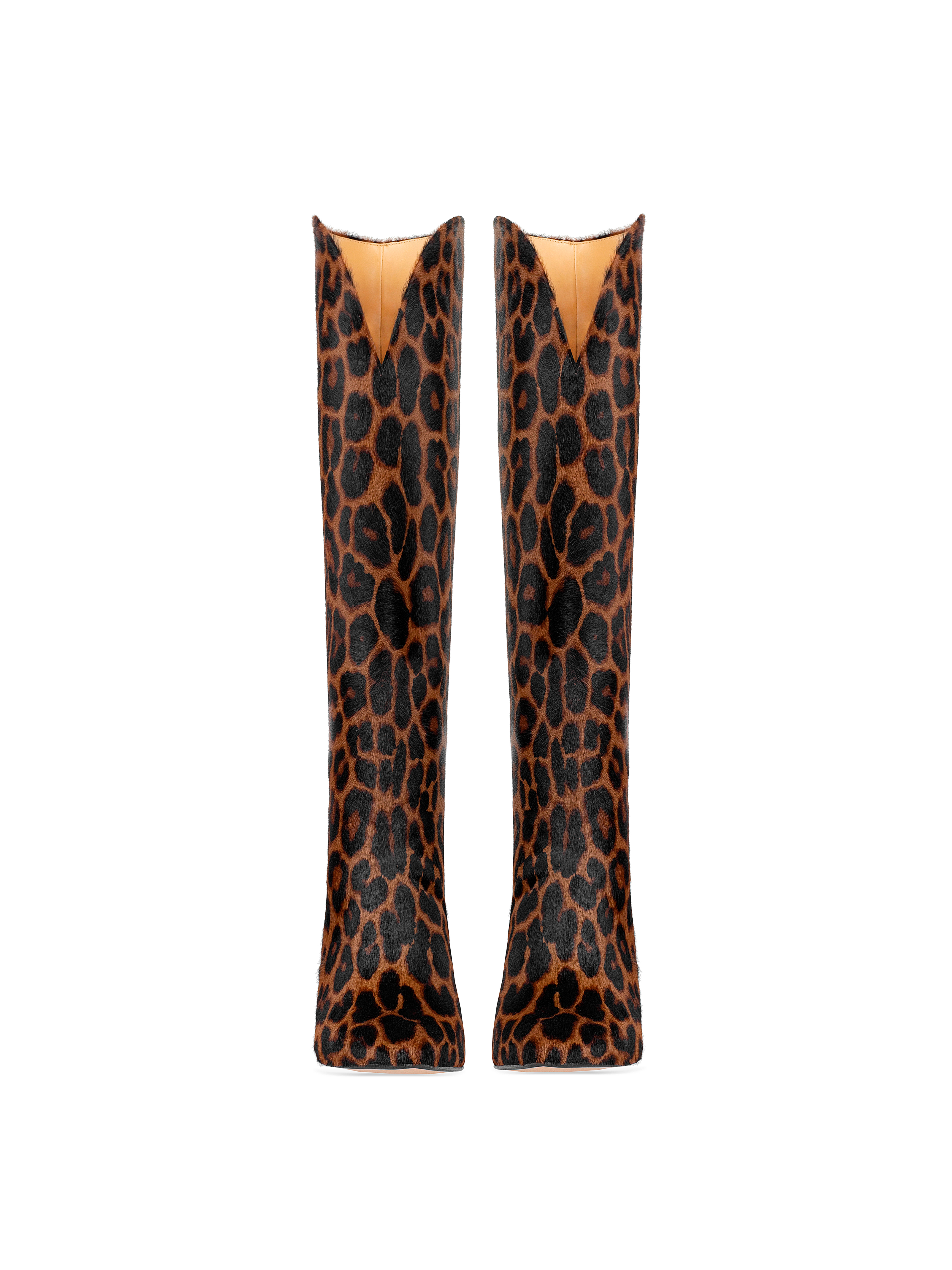 Leopard Printed Kangaroo Fur Heeled Tall Boots