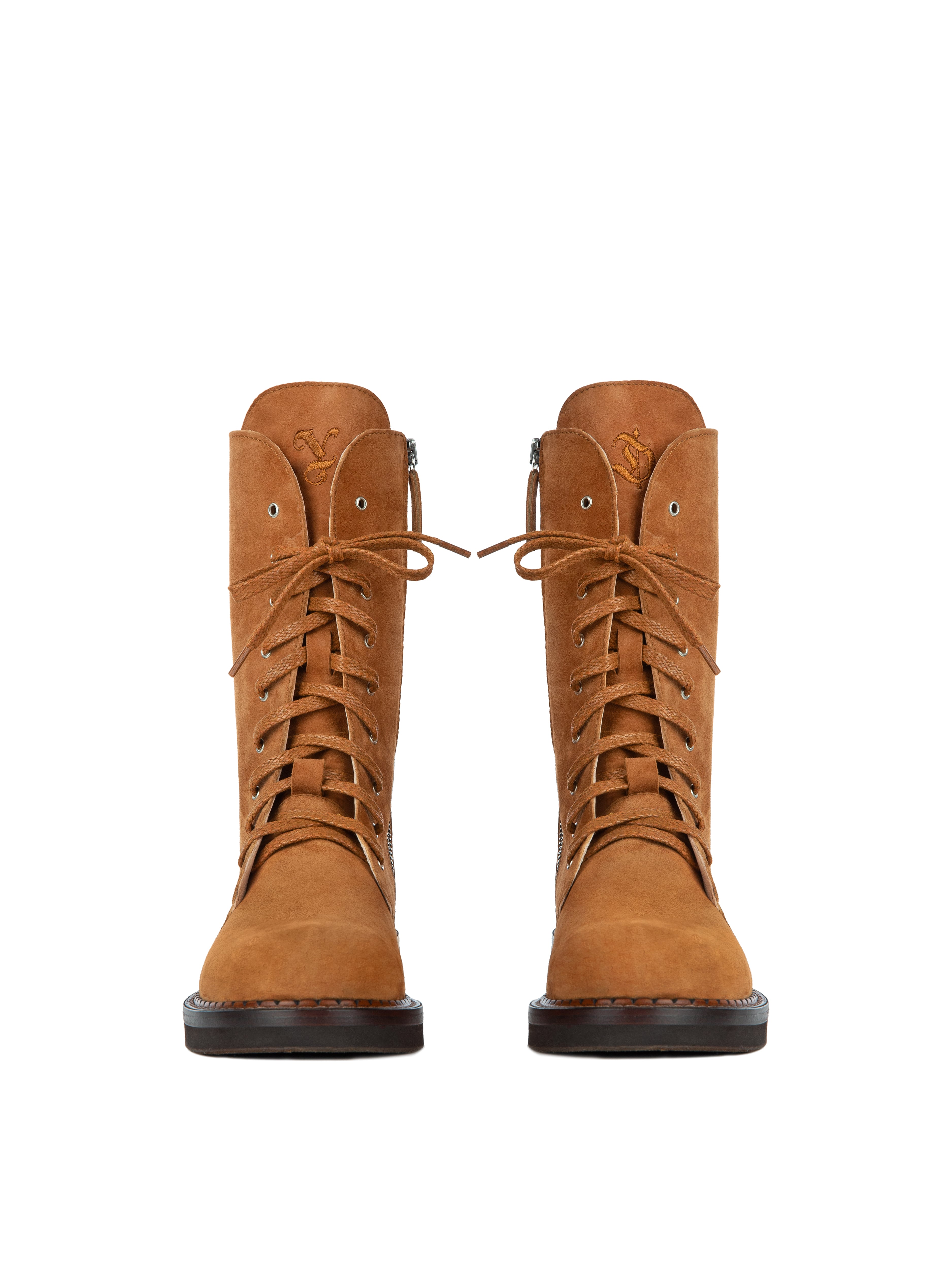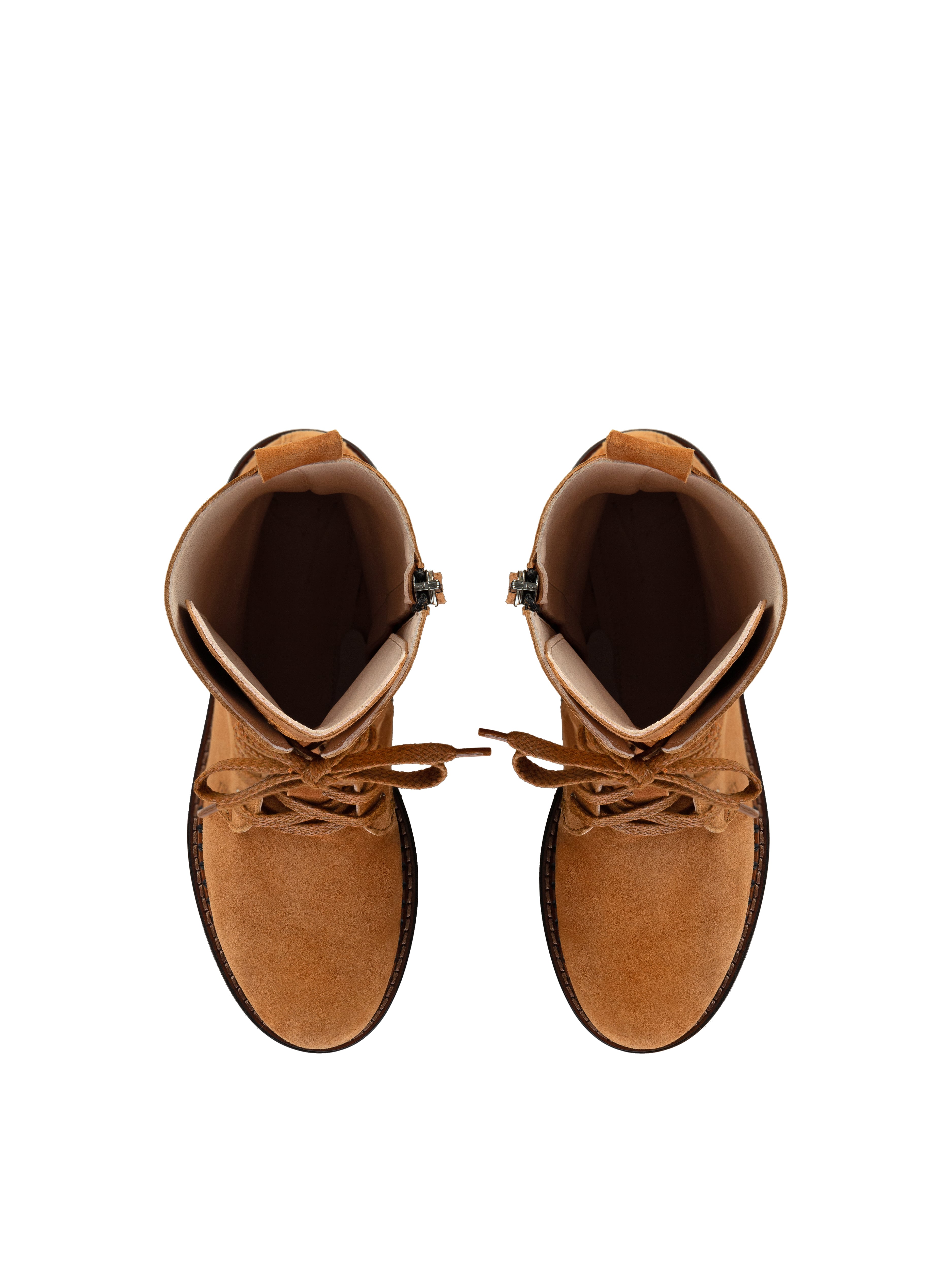 High brown lace-up boots made of genuine suede will go with everything in your wardrobe and elevate your everyday outfit. The style is complemented with a pull tab on the shaft so that the shoes are comfortable to take off.