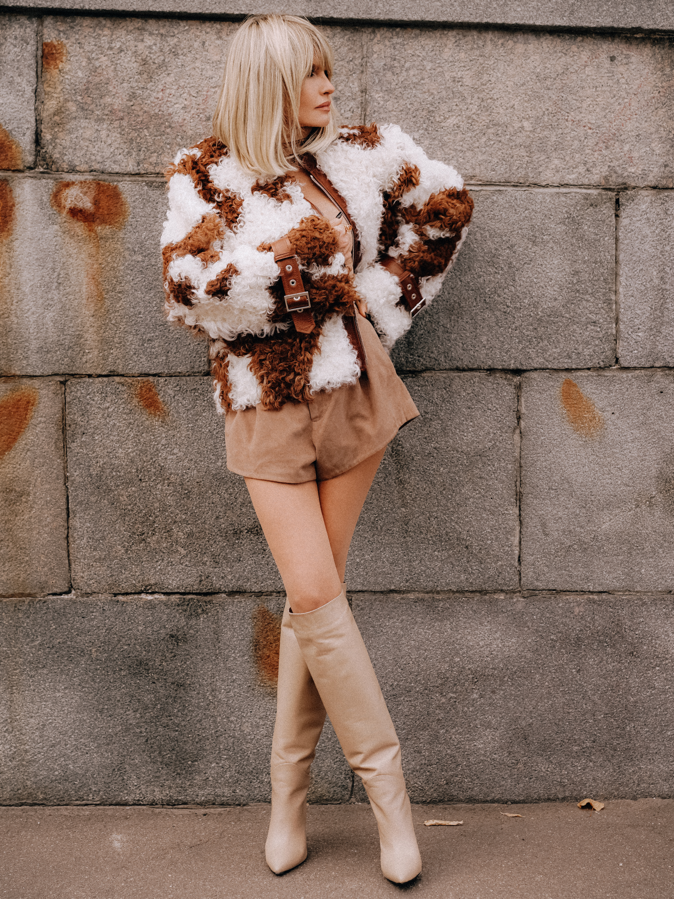 Eggshell Cream Leather Stiletto Boots