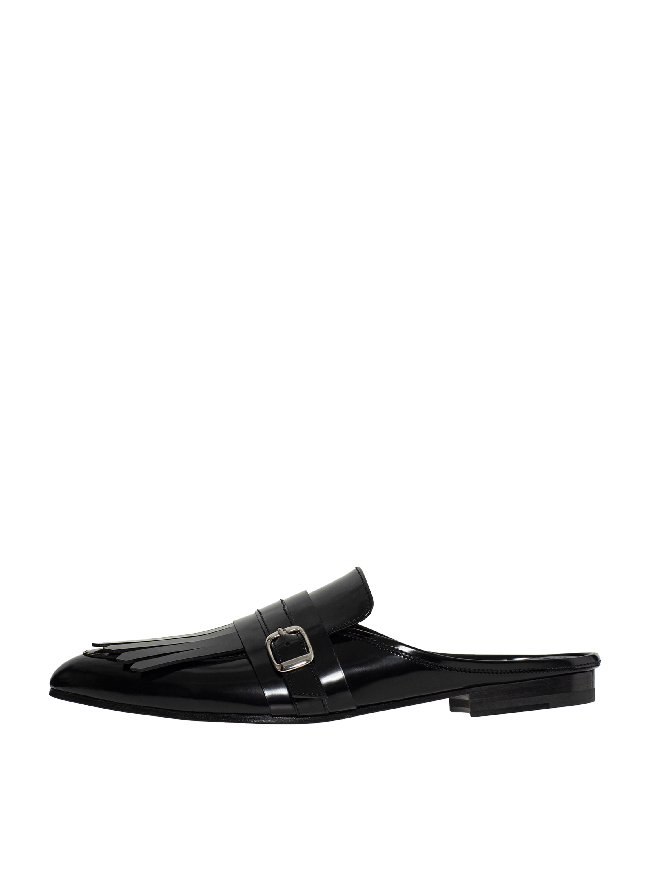 Mules made of soft calfskin are versatile, elegant and practical footwear that combines classic and modern style. The model is complemented with buckles and fringe.