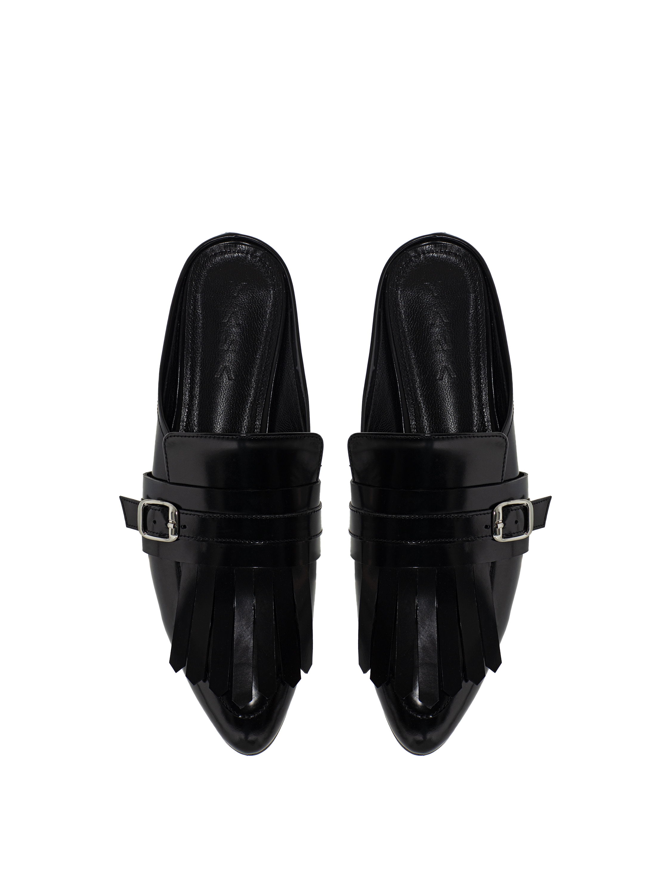 Leather mules with fringe
