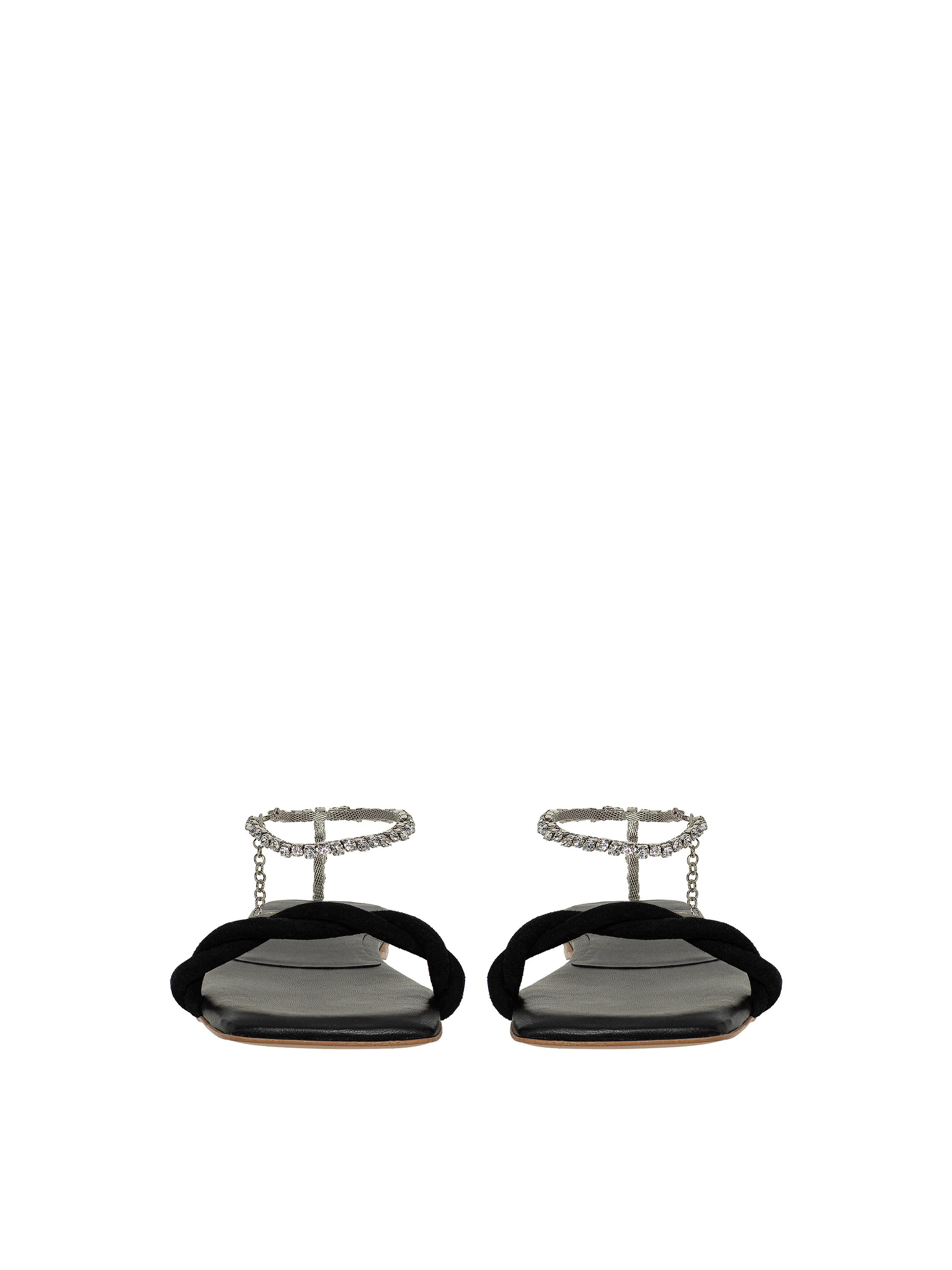 Black Rhinestones Leather Sandals