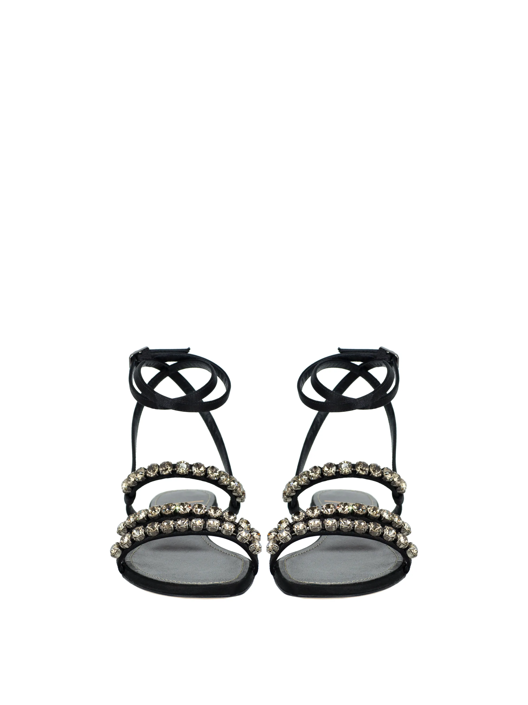 Black Rhinestones Satin Sandals