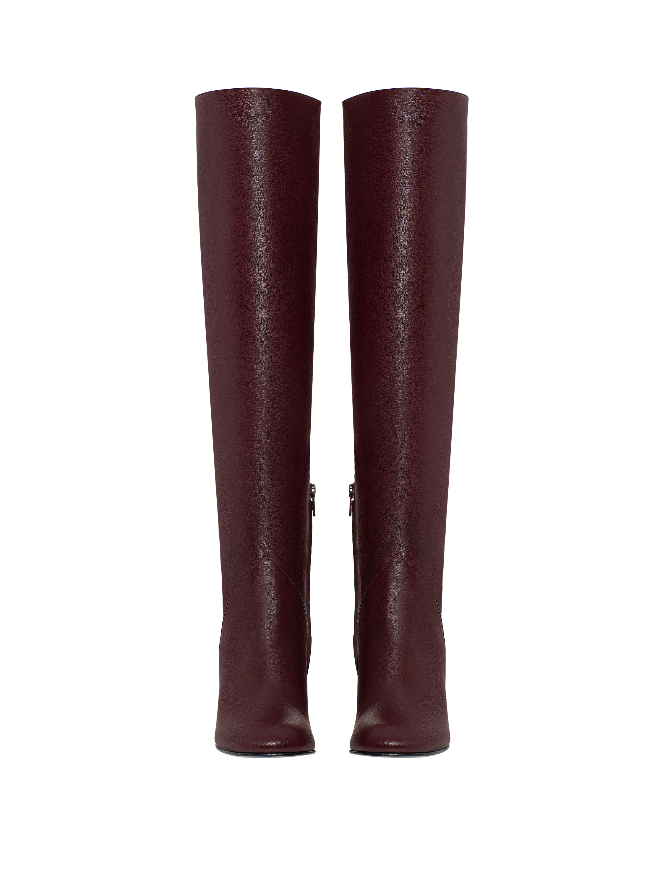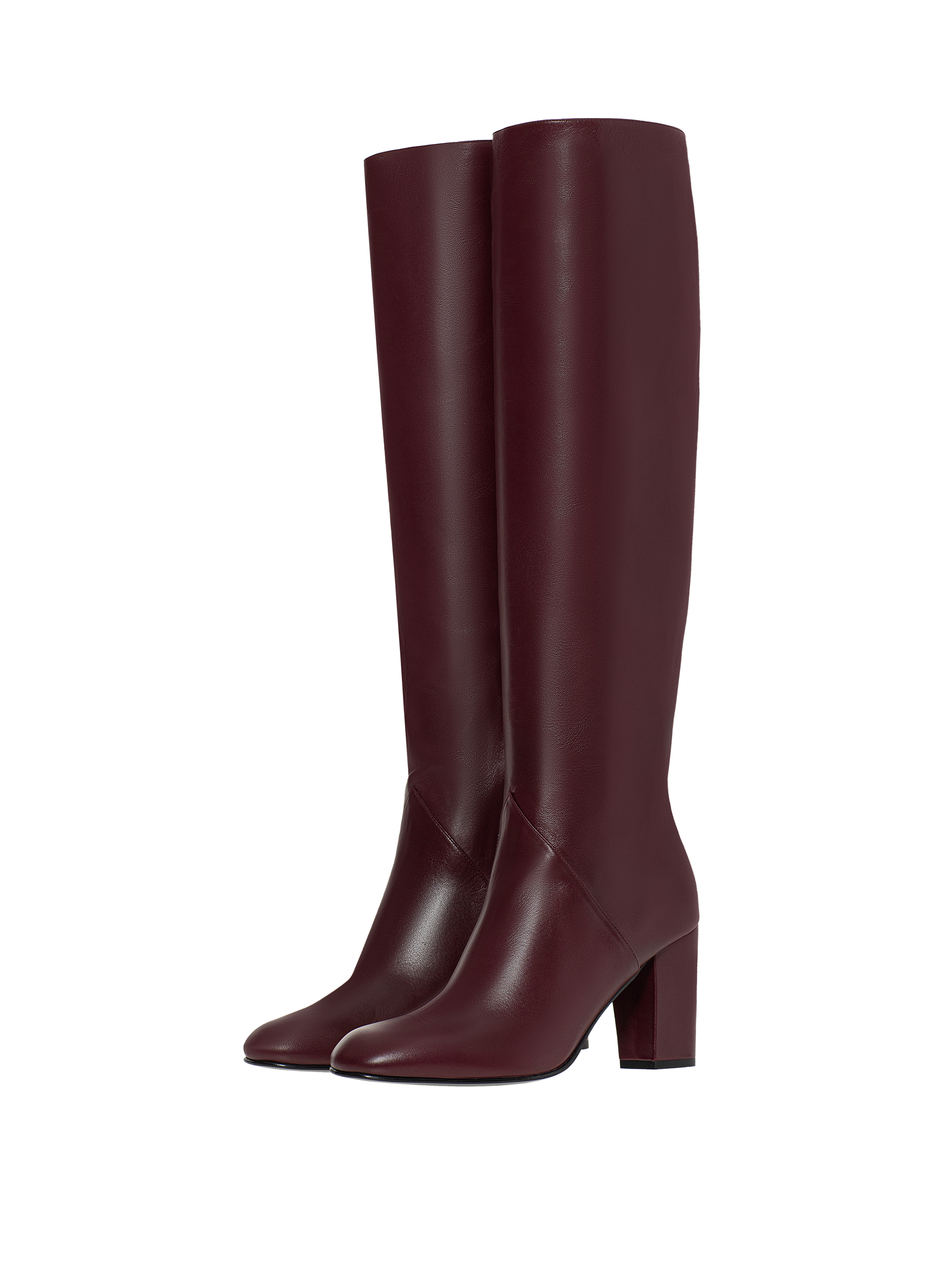 Bordeaux Leather Round Toe Long Boots