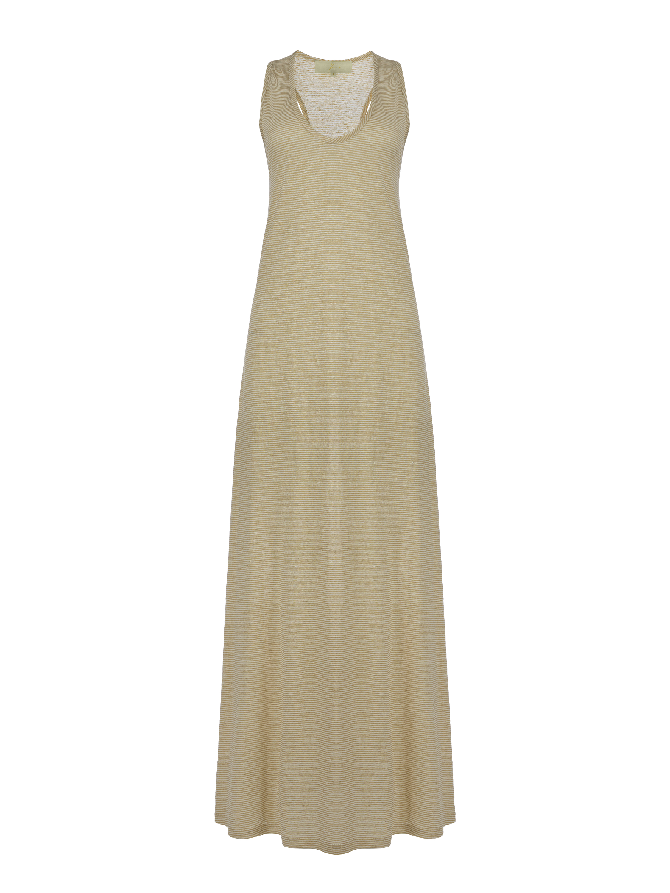 Beige Striped Linen Maxi Dress