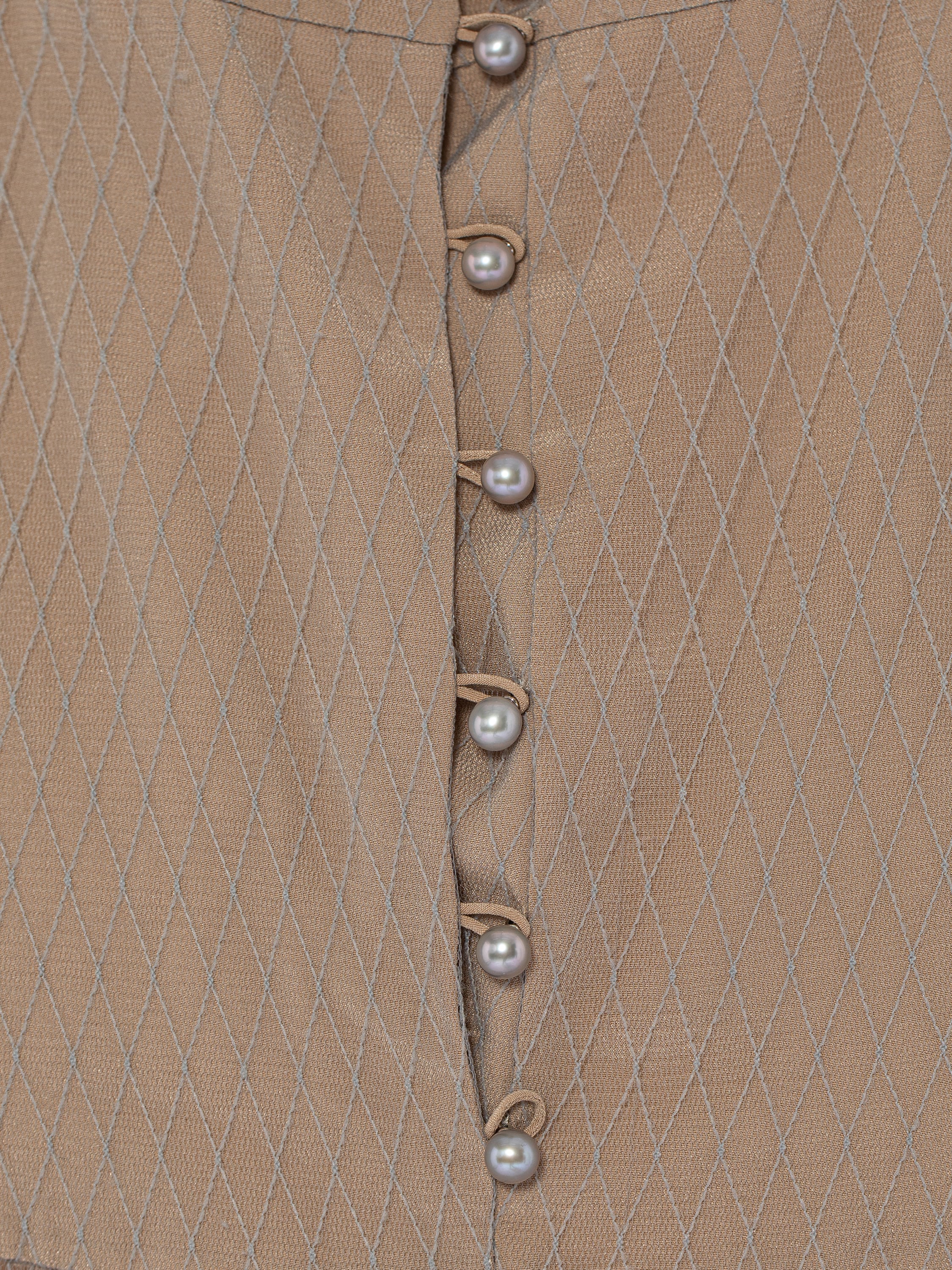 Beige Mesh & Organza Midi Dress