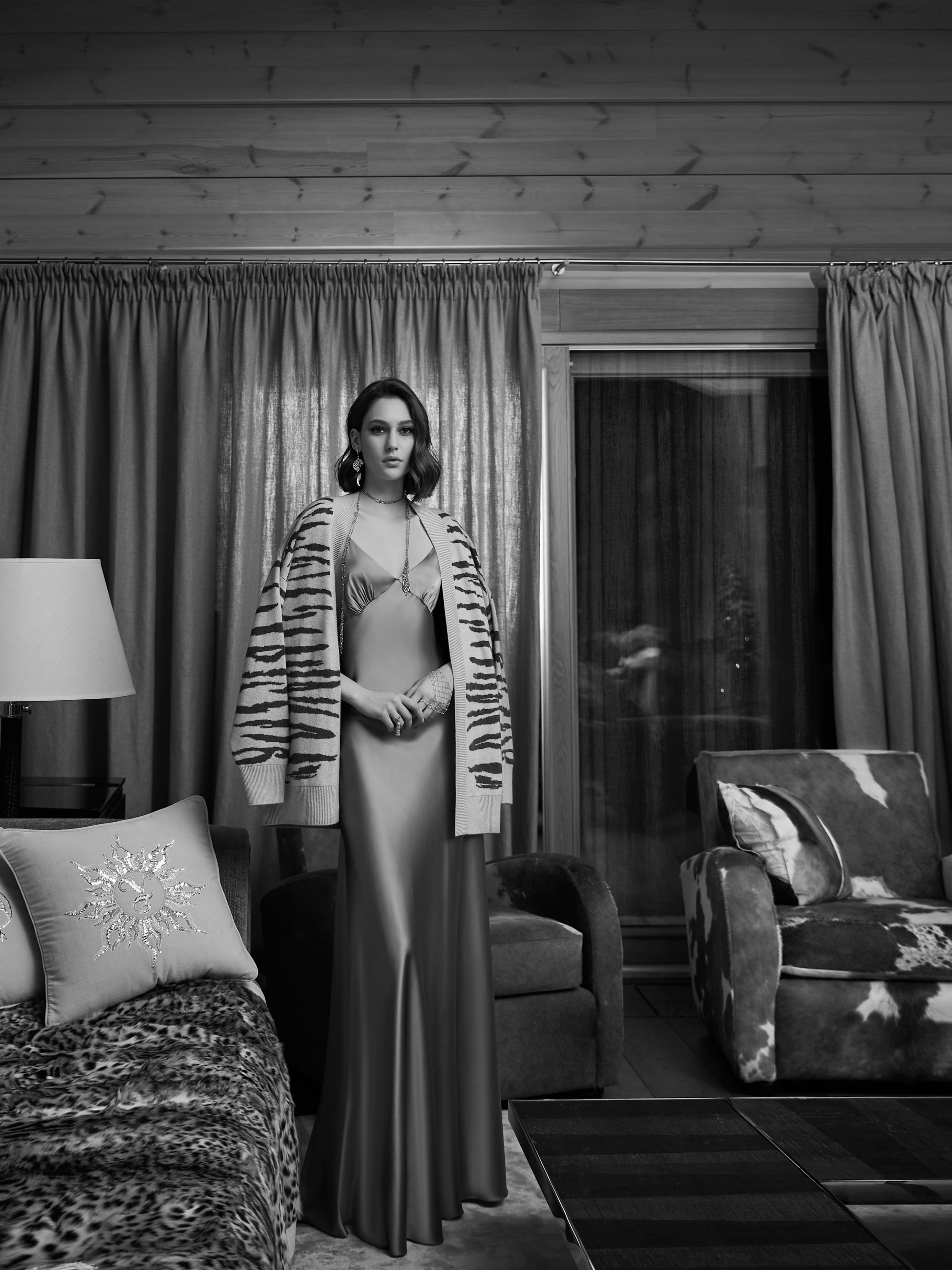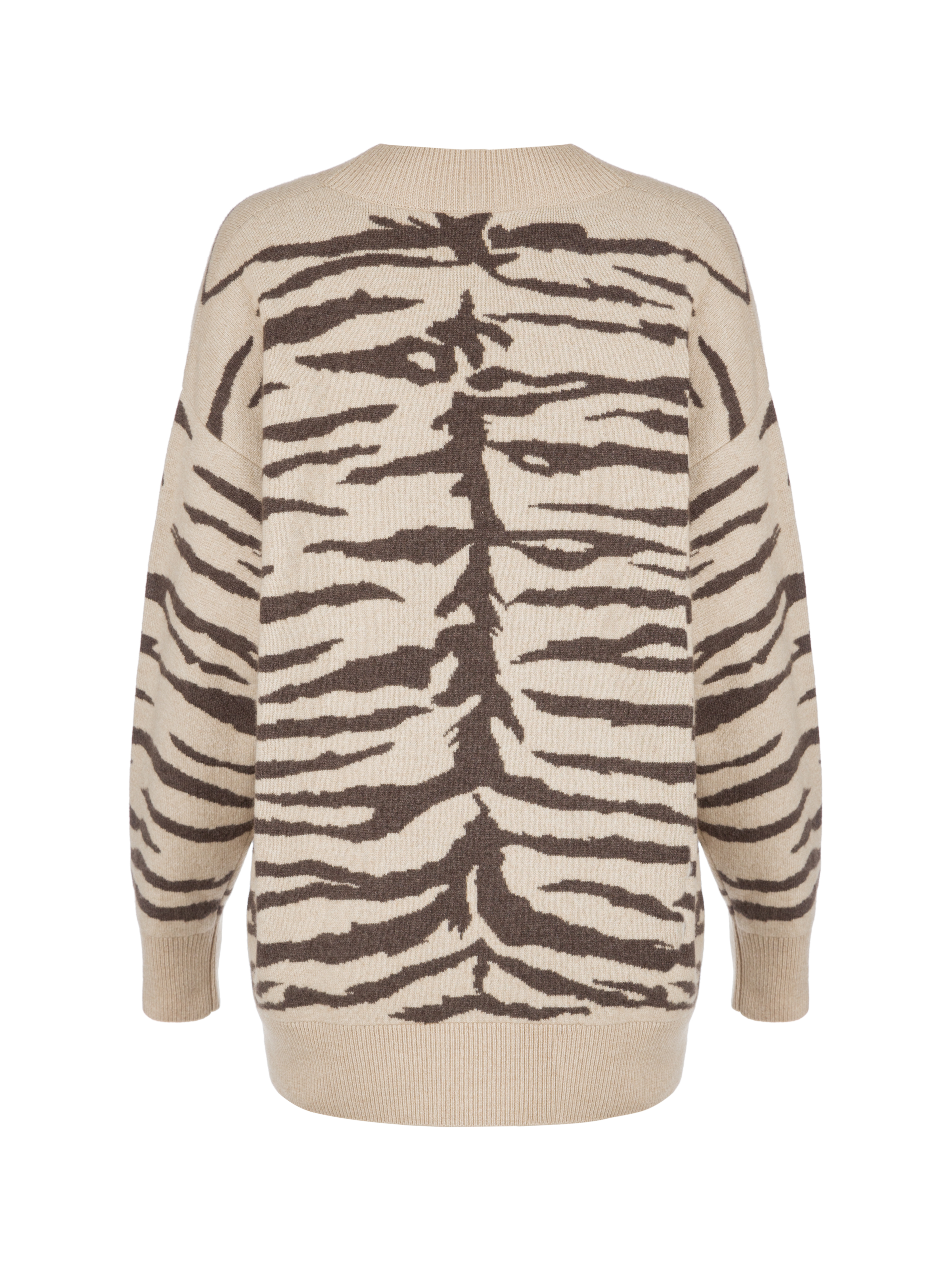Beige Cashmere Tiger Printed Cardigan