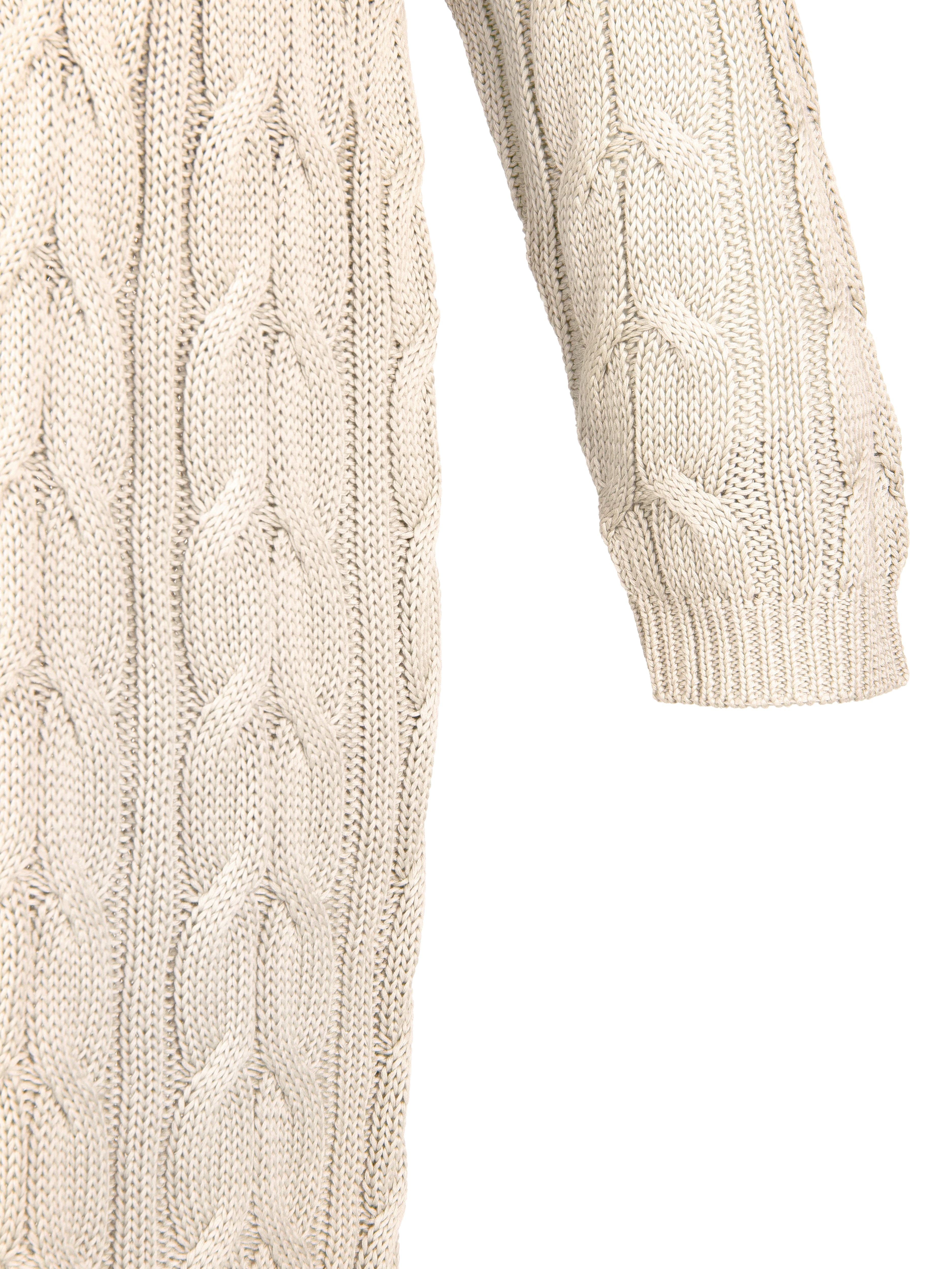 Beige Tencel & Silk Cable Knit Long Cardigan