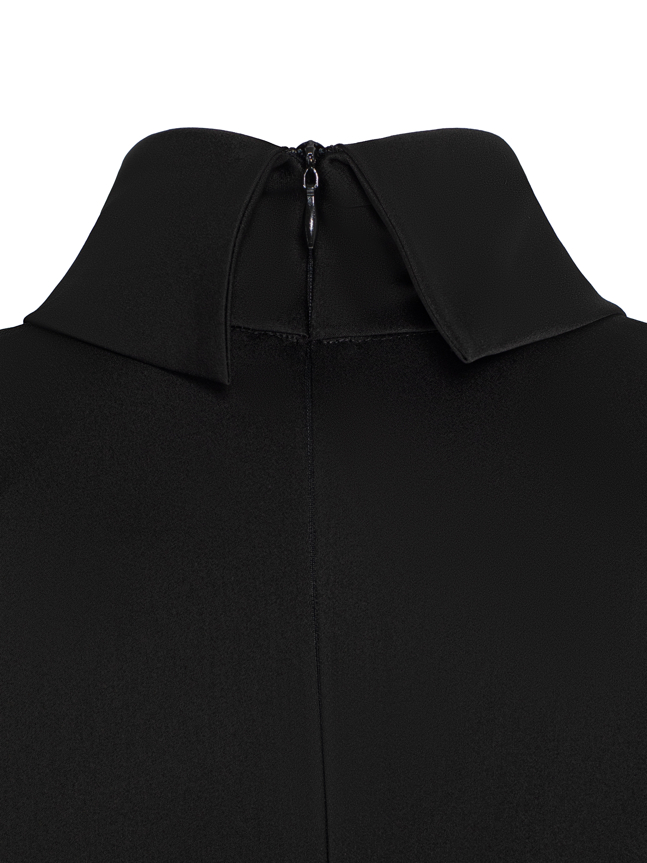 Solid black silk blouse – a minimalist and elegant piece suitable both for a strict business look and for everyday wear. Voluminous shoulders create a dramatic silhouette with an accent on the waist.