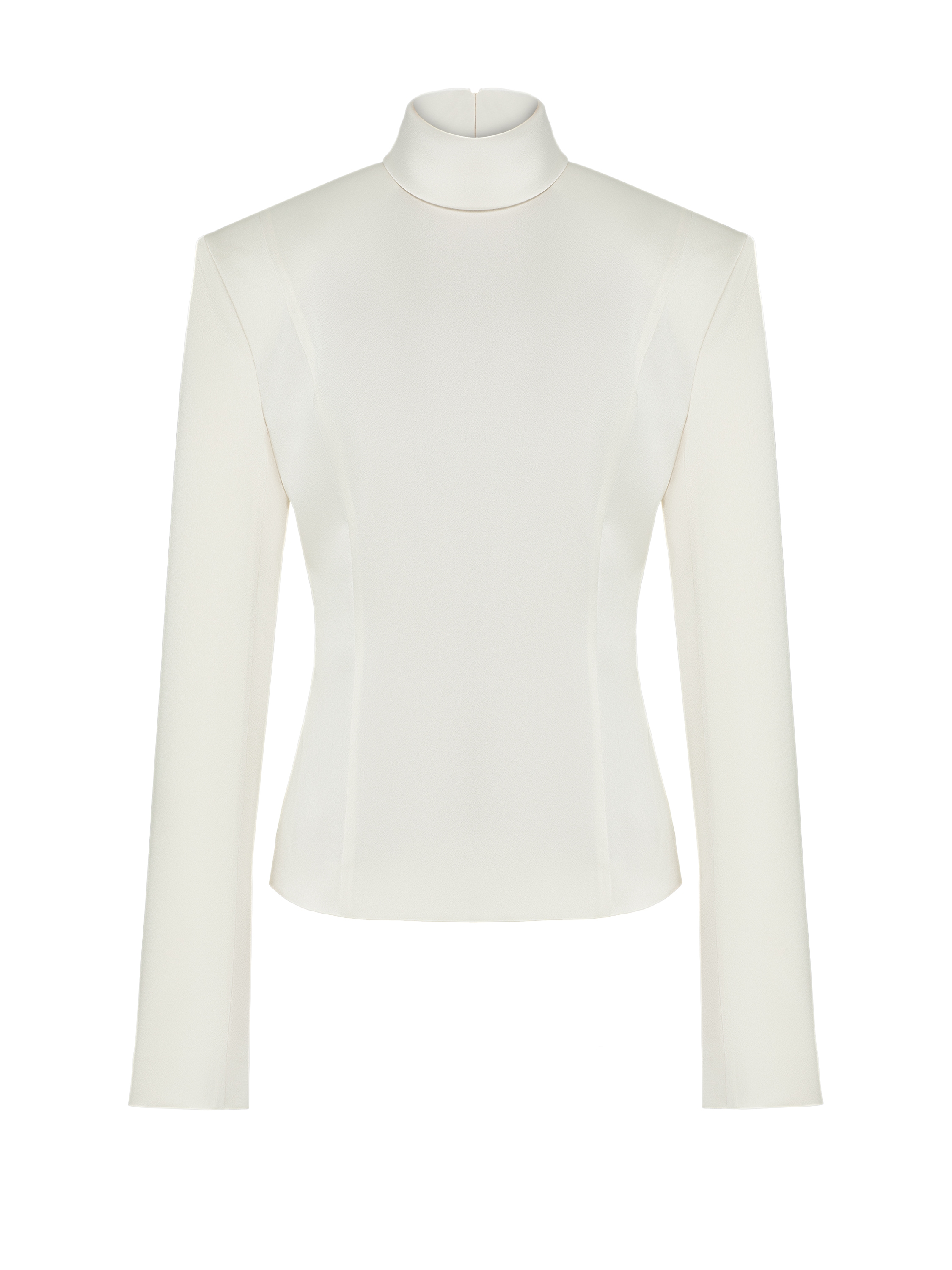Solid ivory silk blouse – a minimalist and elegant piece suitable both for a strict business look and for everyday wear. Voluminous shoulders create a dramatic silhouette with an accent on the waist.