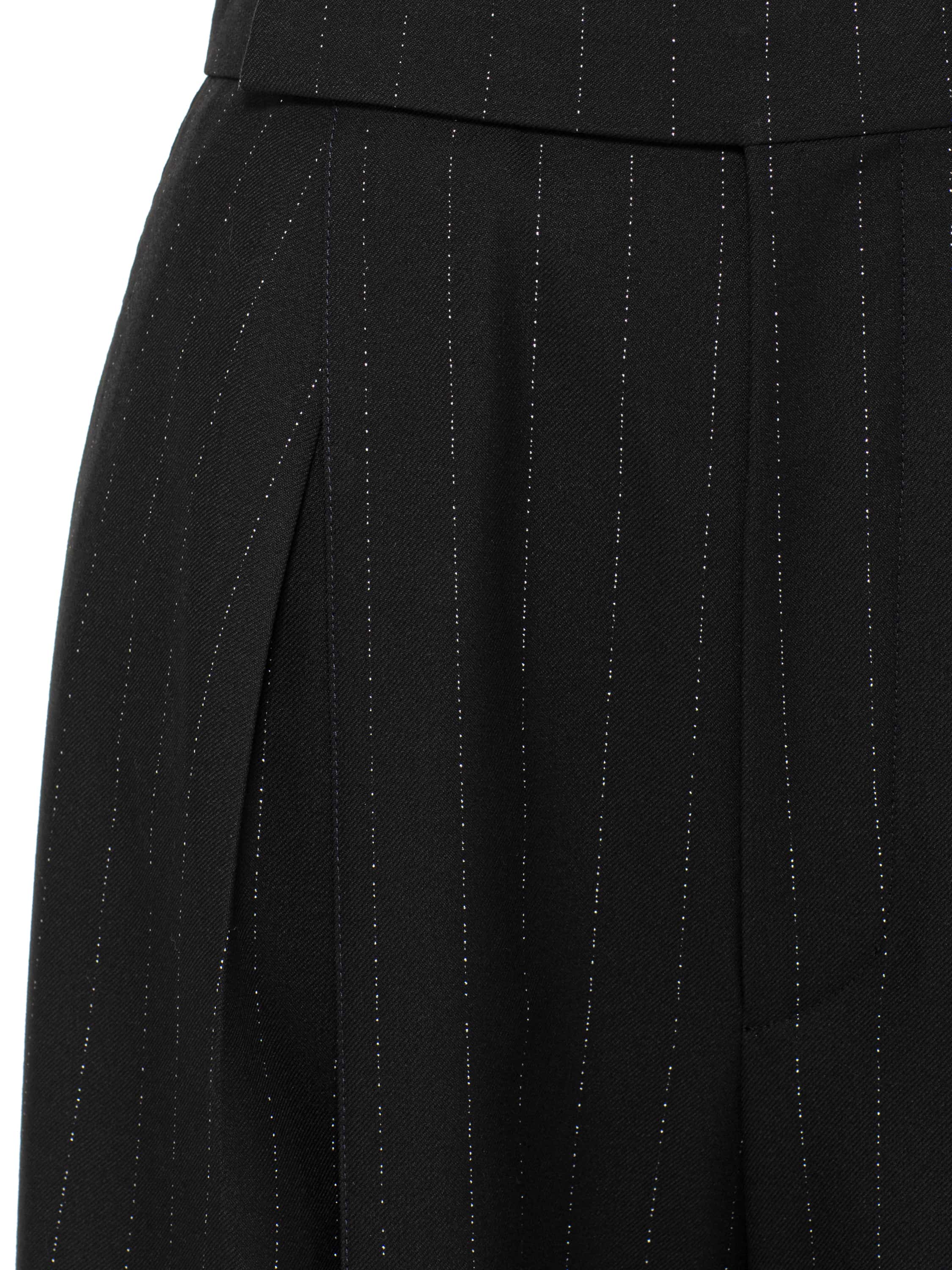 Elegant trousers made of noble black striped suiting fabric are a real find for a business wardrobe. The D-silhouette creates a feminine look, delicately emphasizing the advantages of the figure.