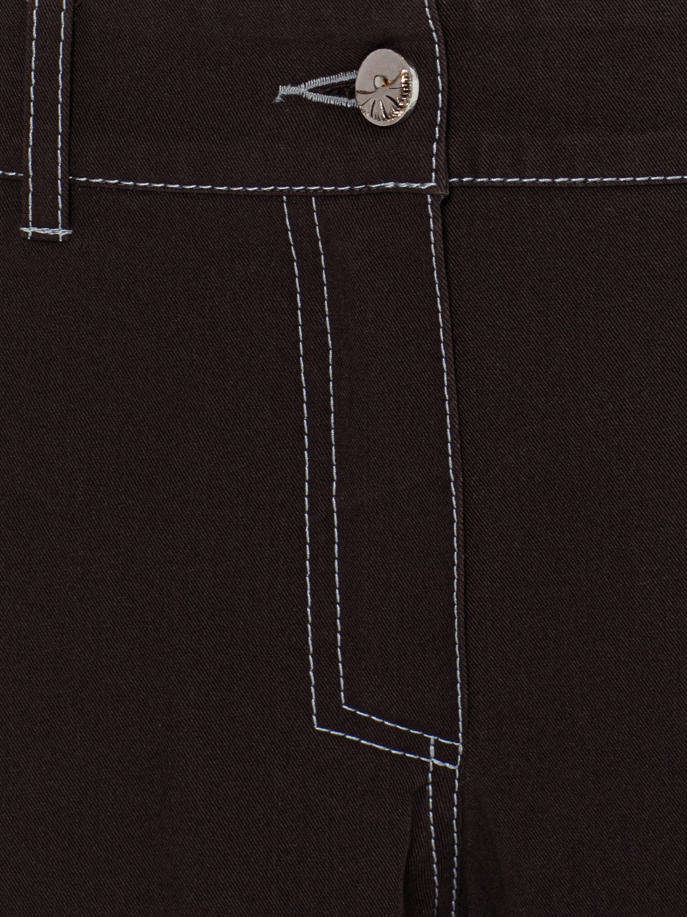 The dark brown jeans are made of cotton fabric. The flared model is decorated with eagle embroidery on the back pockets.