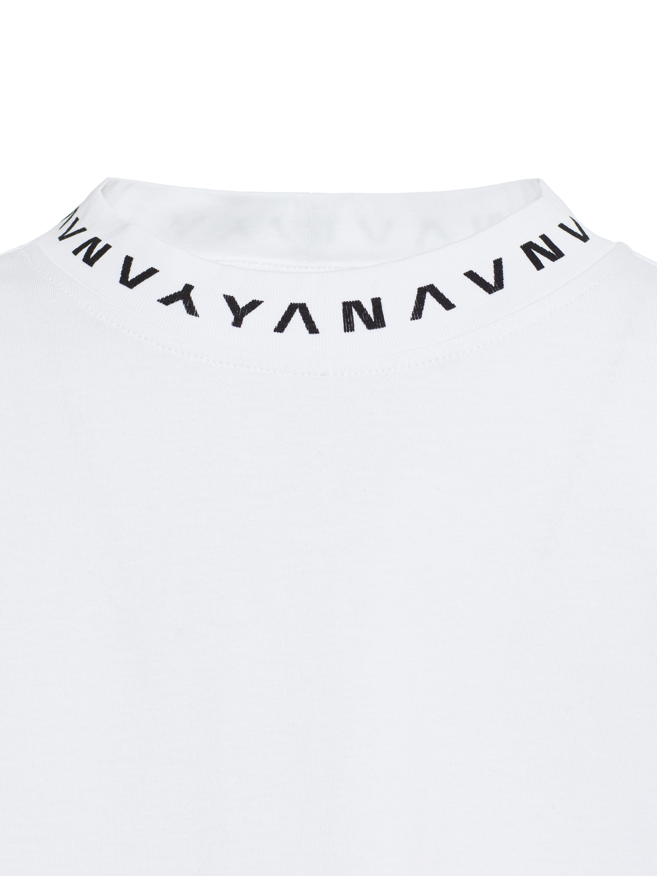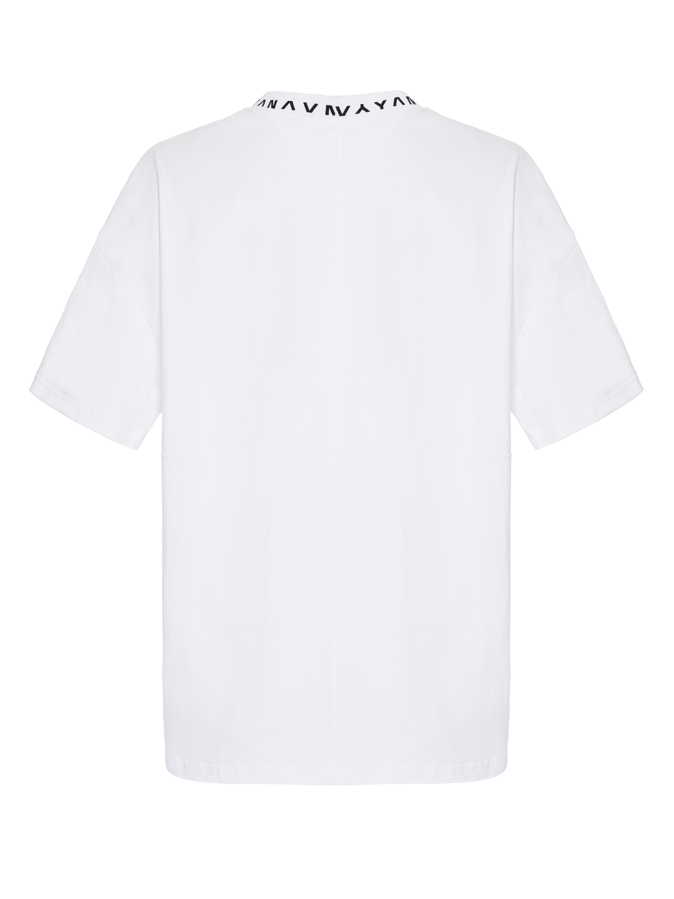 Basic loose-fit white T-shirt. The crew neckline is complemented by a minimalist black YANA print. The laconic model is made of breathable cotton fabric. The material is lightweight and pleasant to the skin, and the T-shirt will be comfortable even in hot weather.