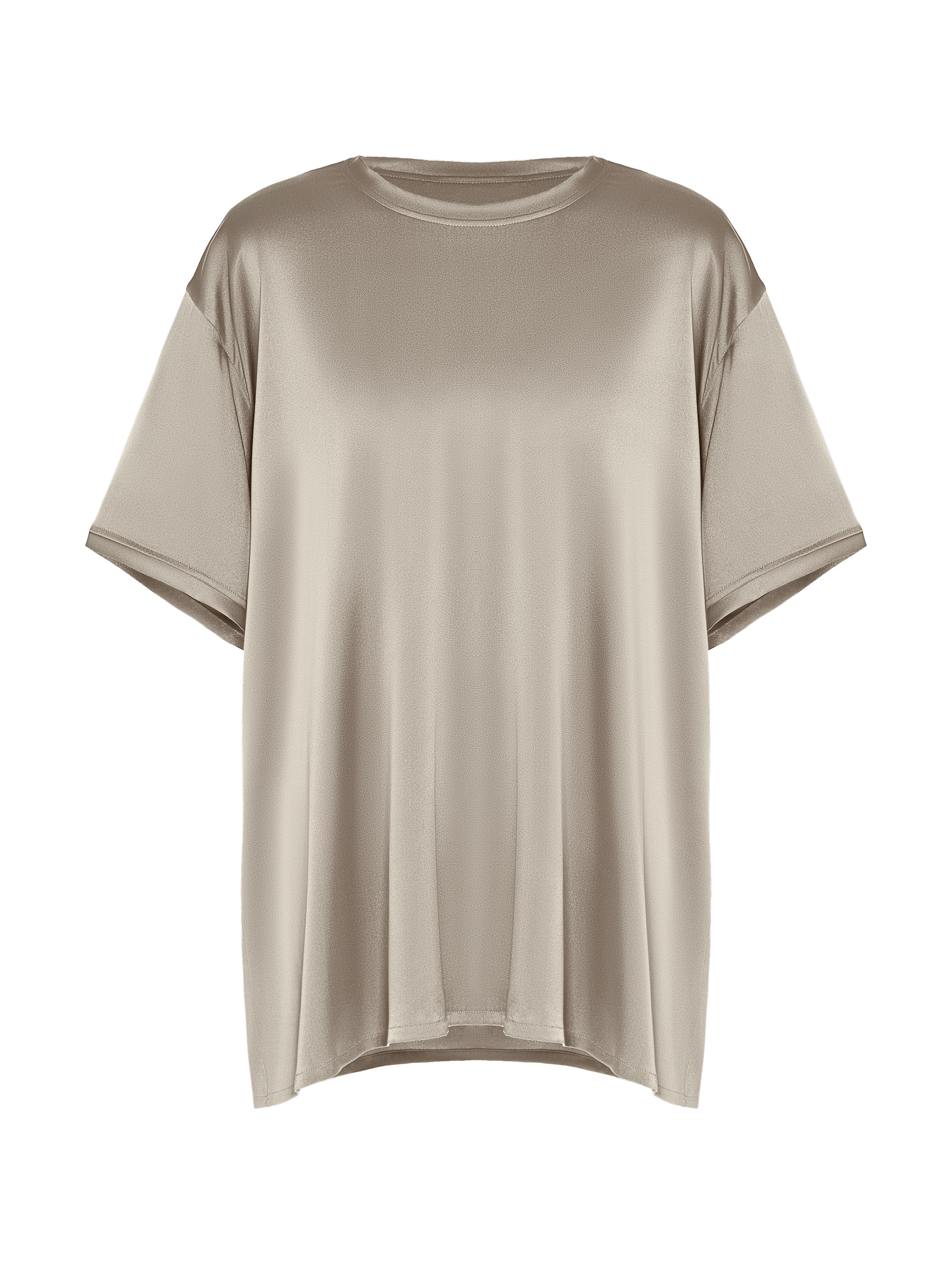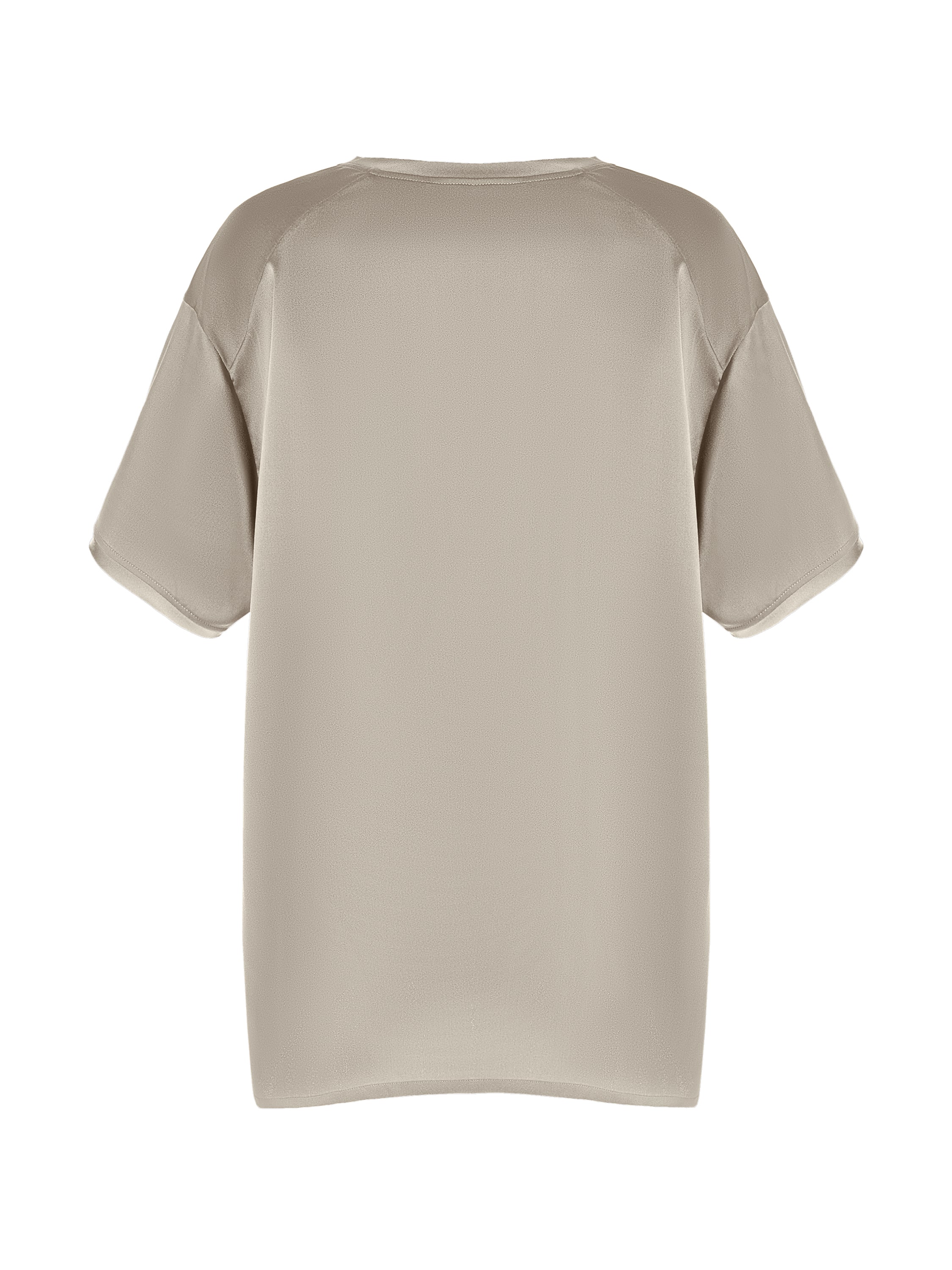 A delicate oversized beige T-shirt will become an ideal base for creating looks. The model made of 100% silk provides an unparalleled feeling of softness and comfort.
