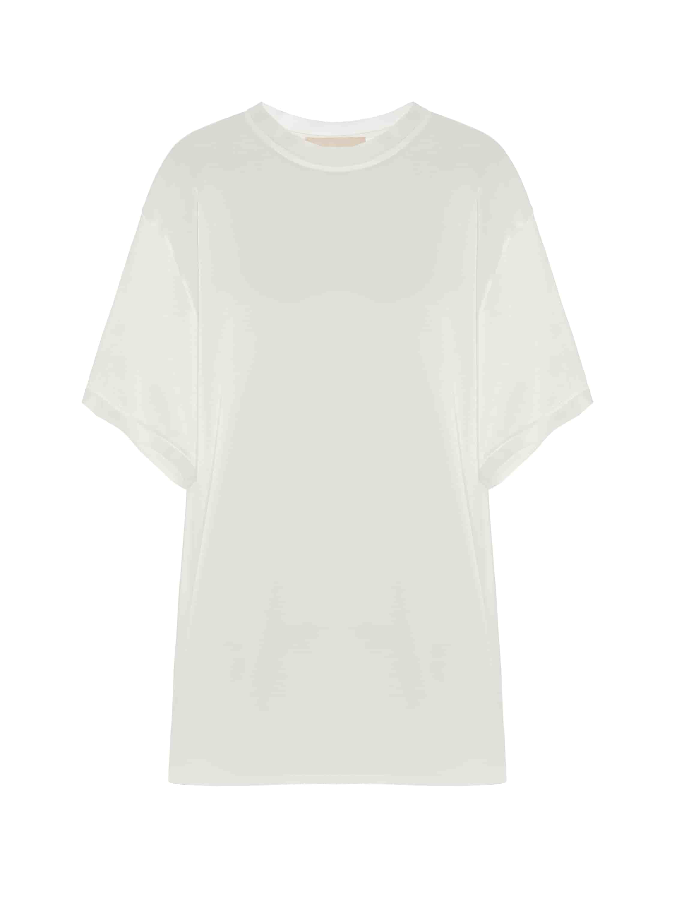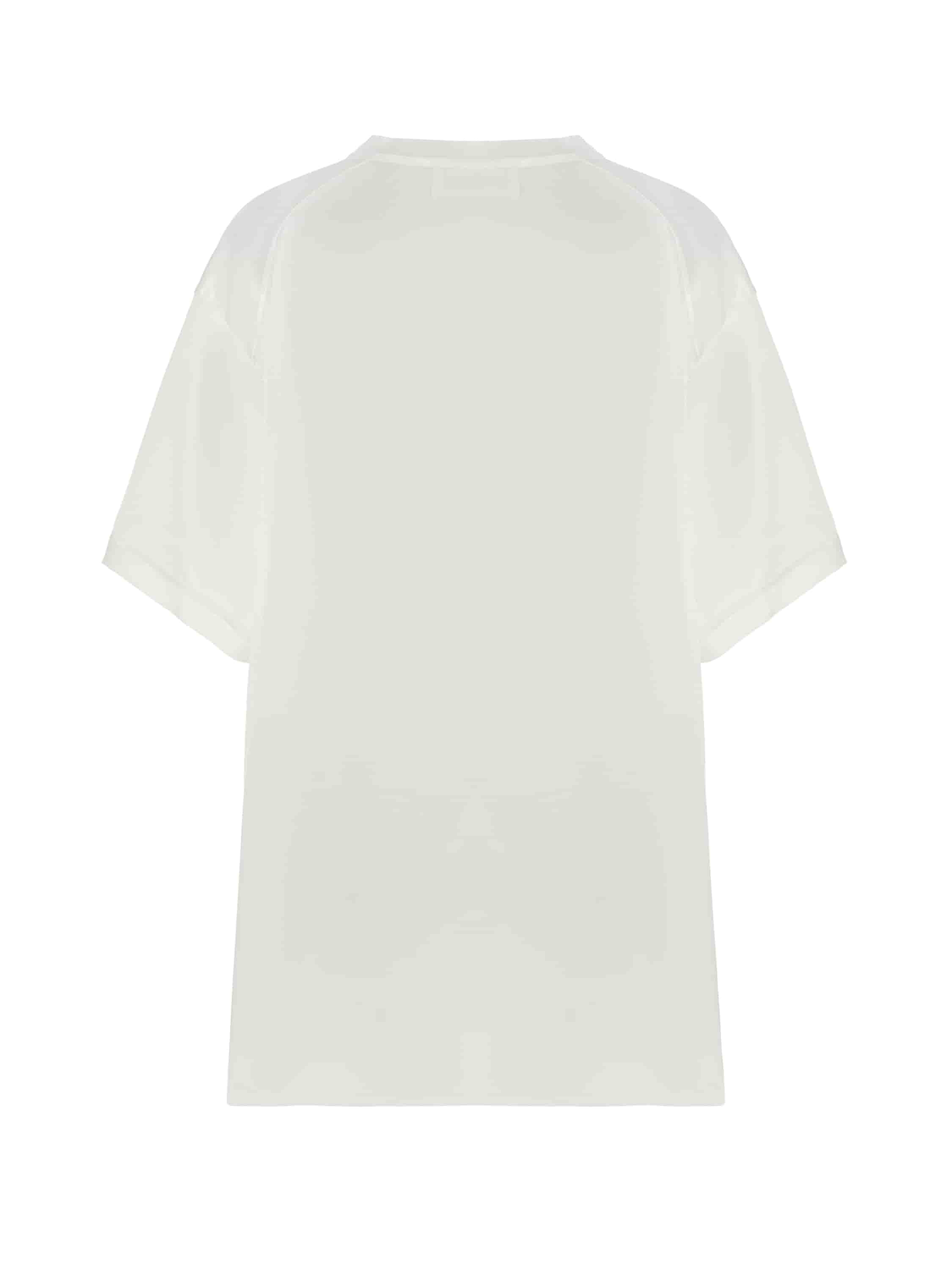 A delicate oversized ivory T-shirt will become an ideal base for creating looks. The model made of 100% silk provides an unparalleled feeling of softness and comfort.
