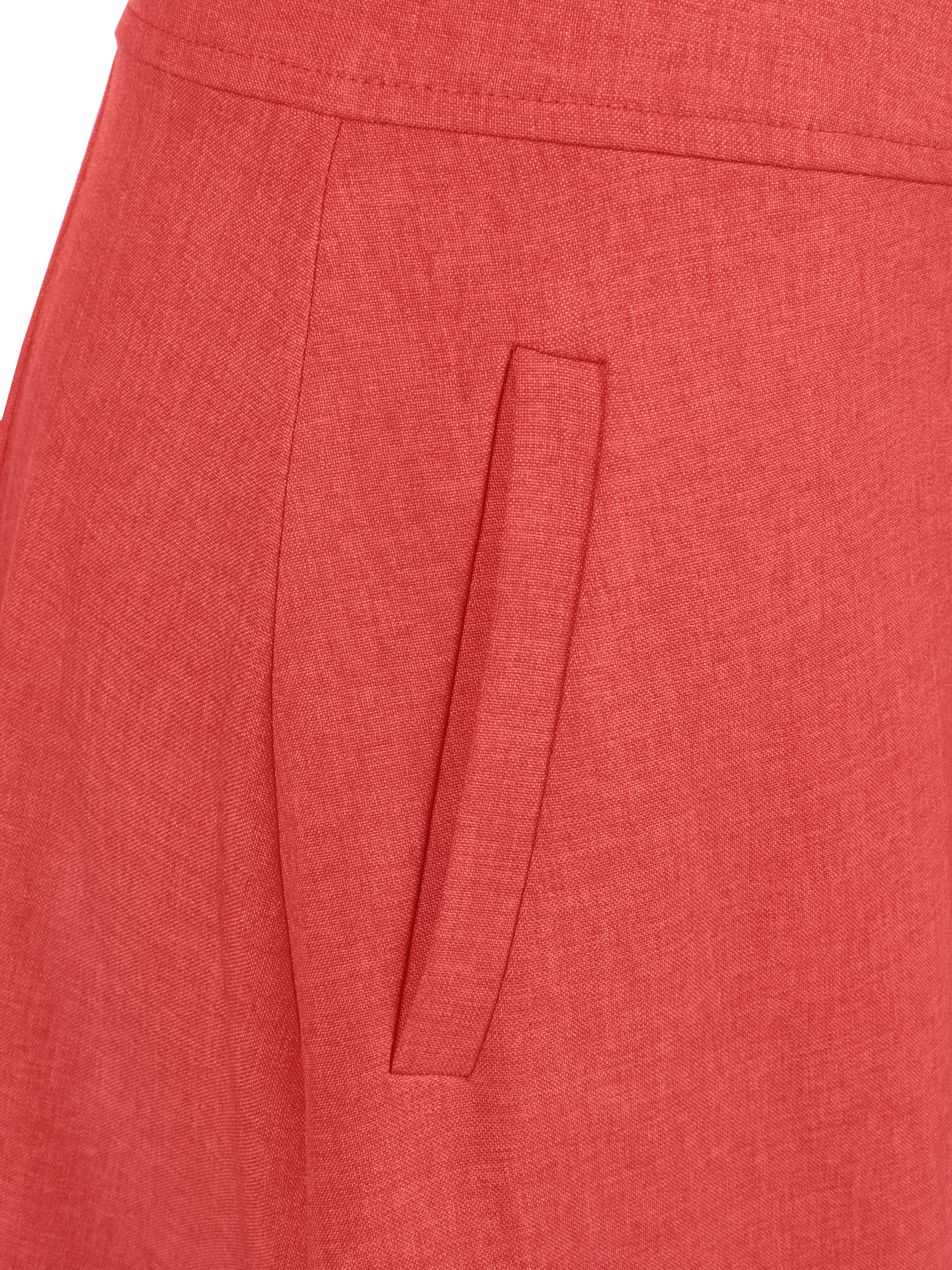 Set, coral linen, blouse with a tie at the hips, flared skirt with buttons