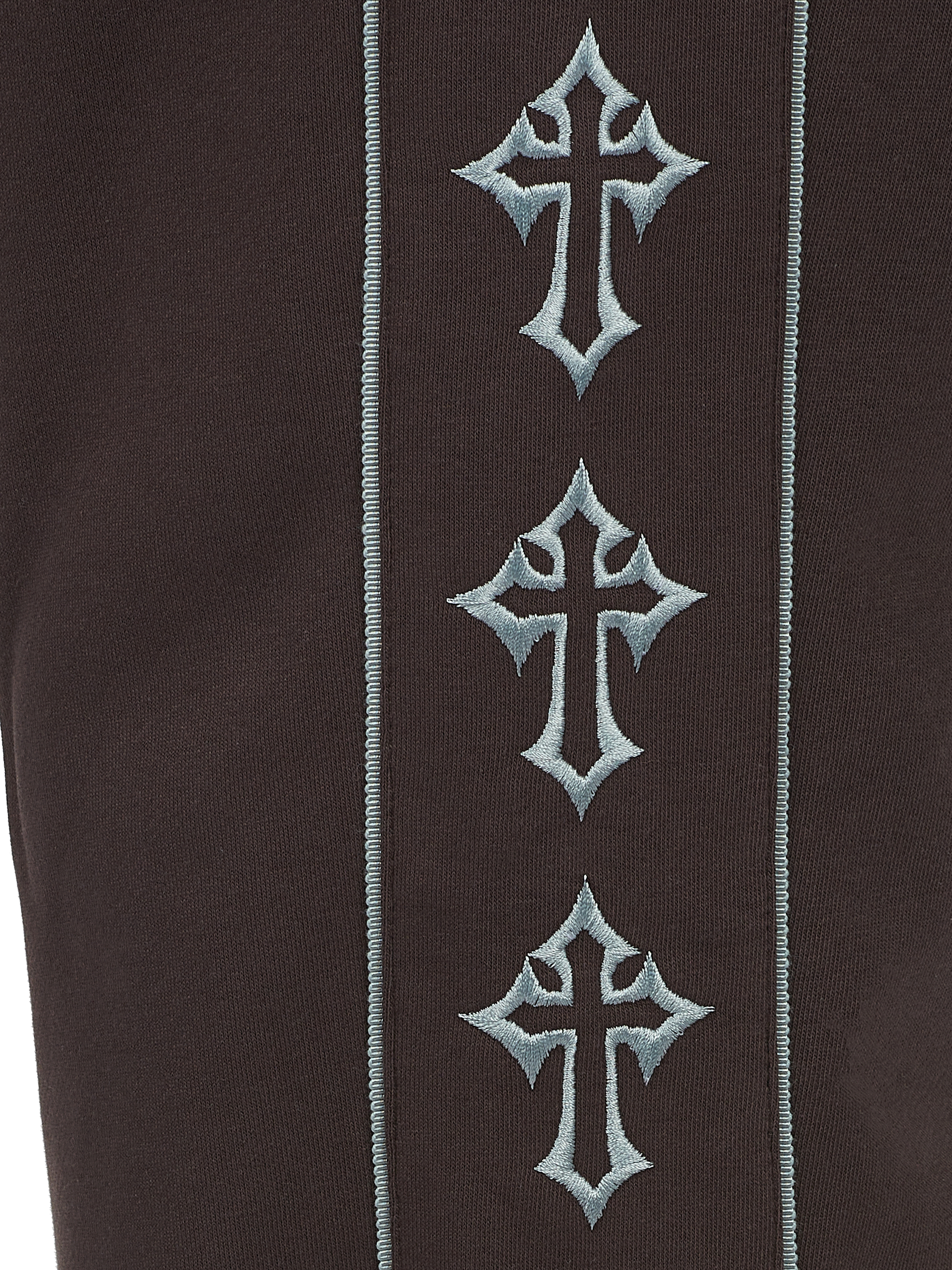 Brown Jersey Set With Cross Embroidery