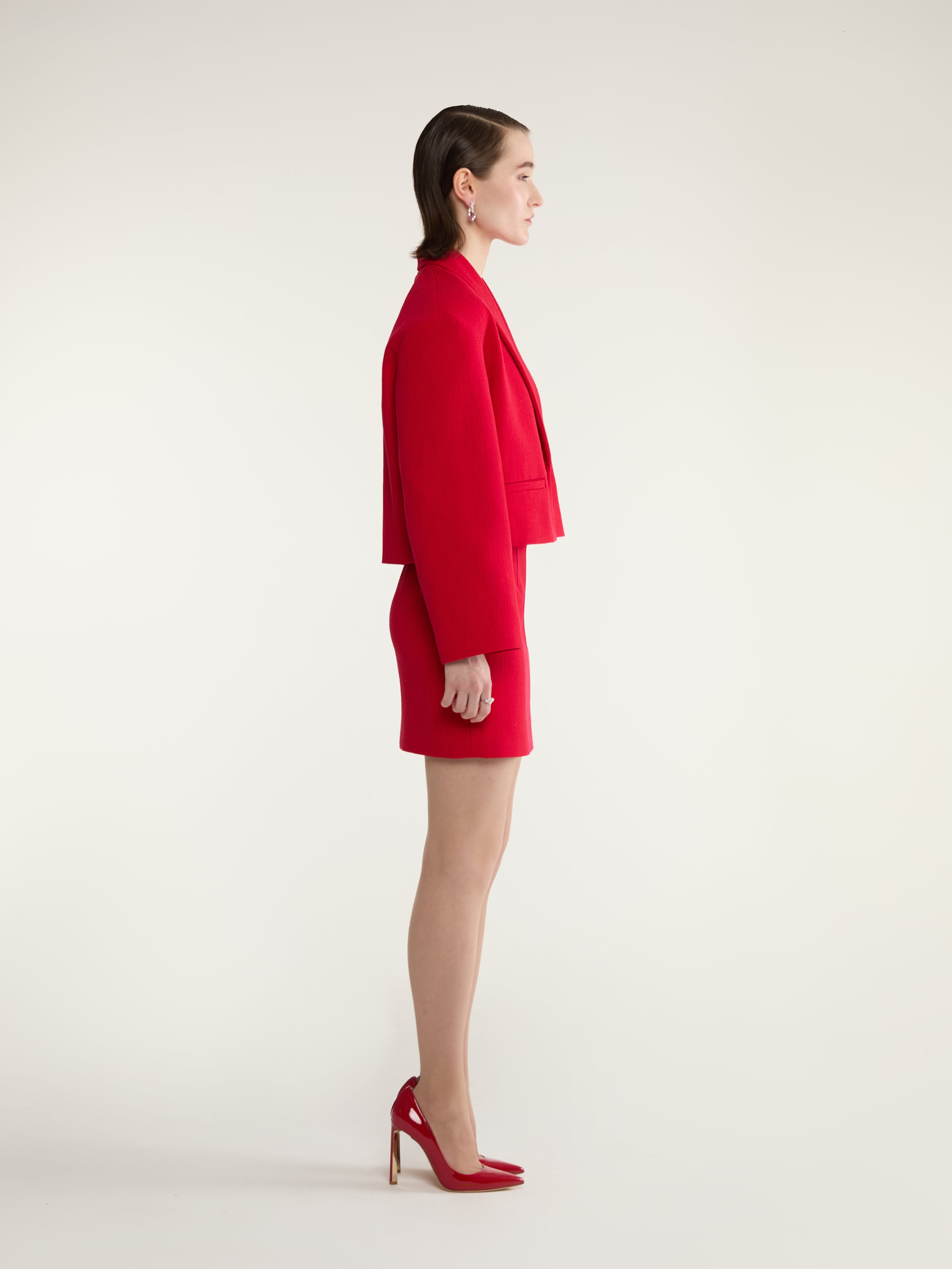 Red Two-piece Suit With Jacket And Mini Skirt