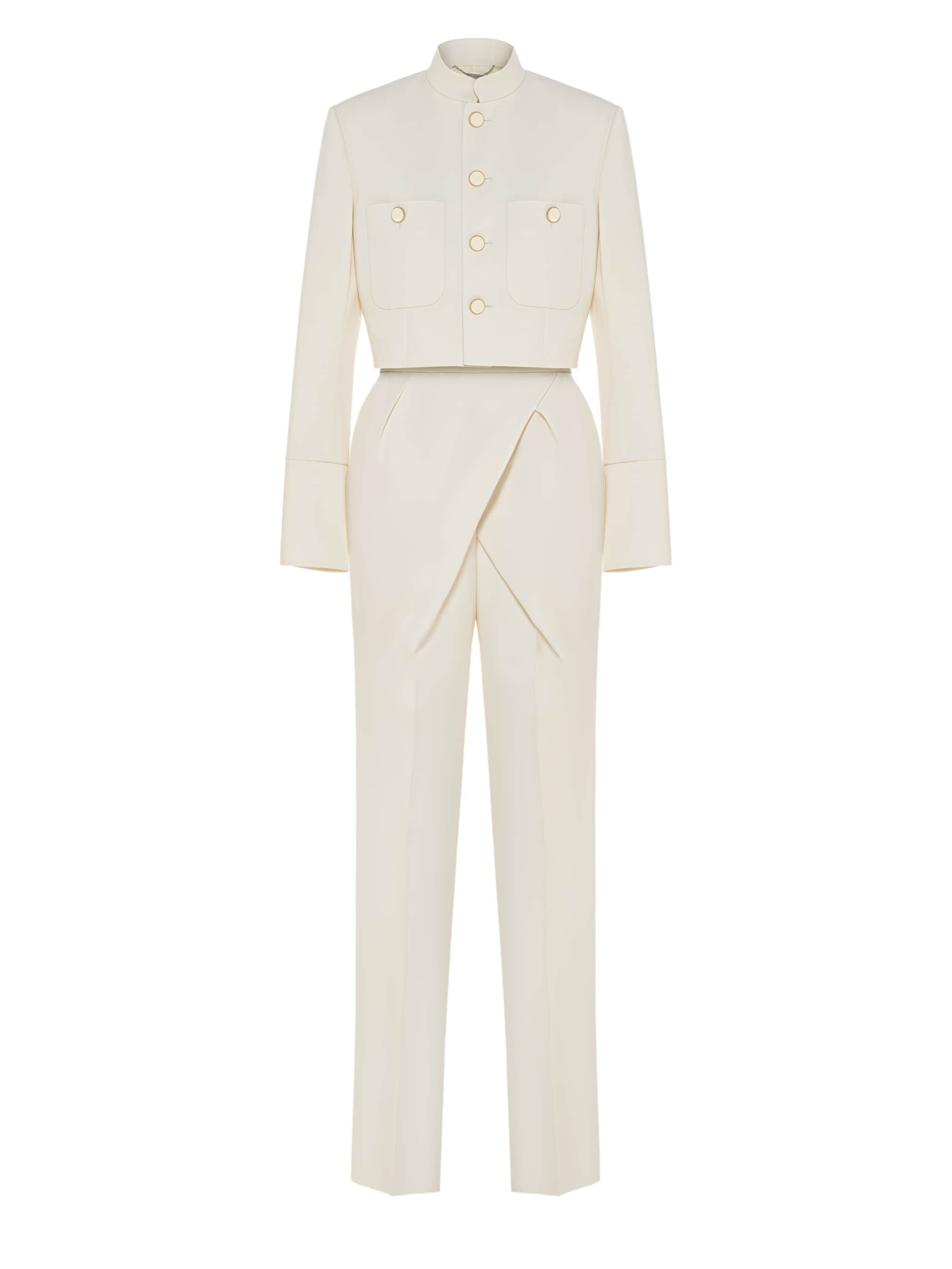 Milk Wool Two-piece Suit With A Cropped Jacket