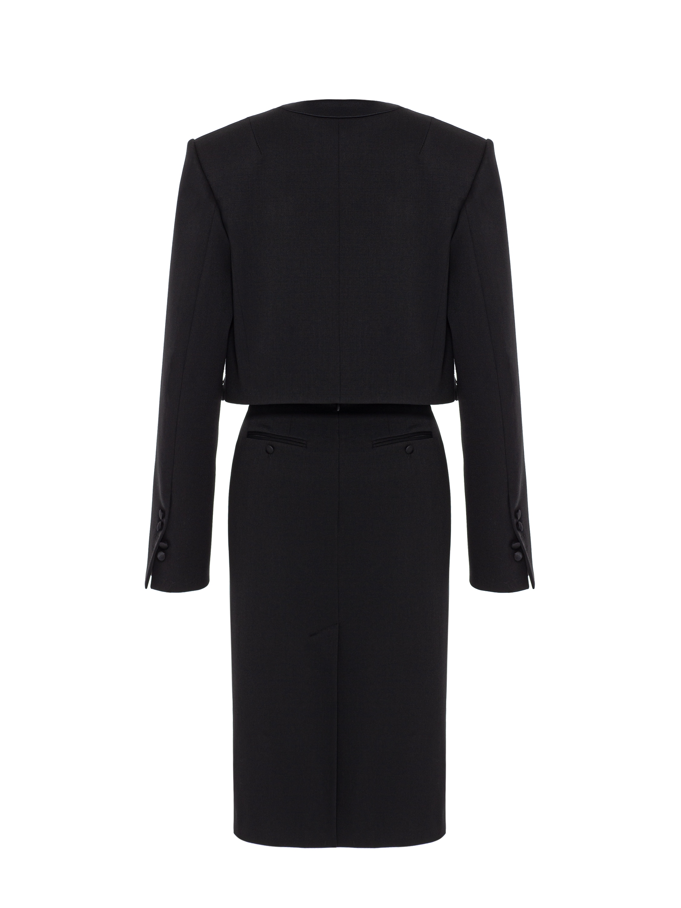 Black suit with jacket and midi skirt