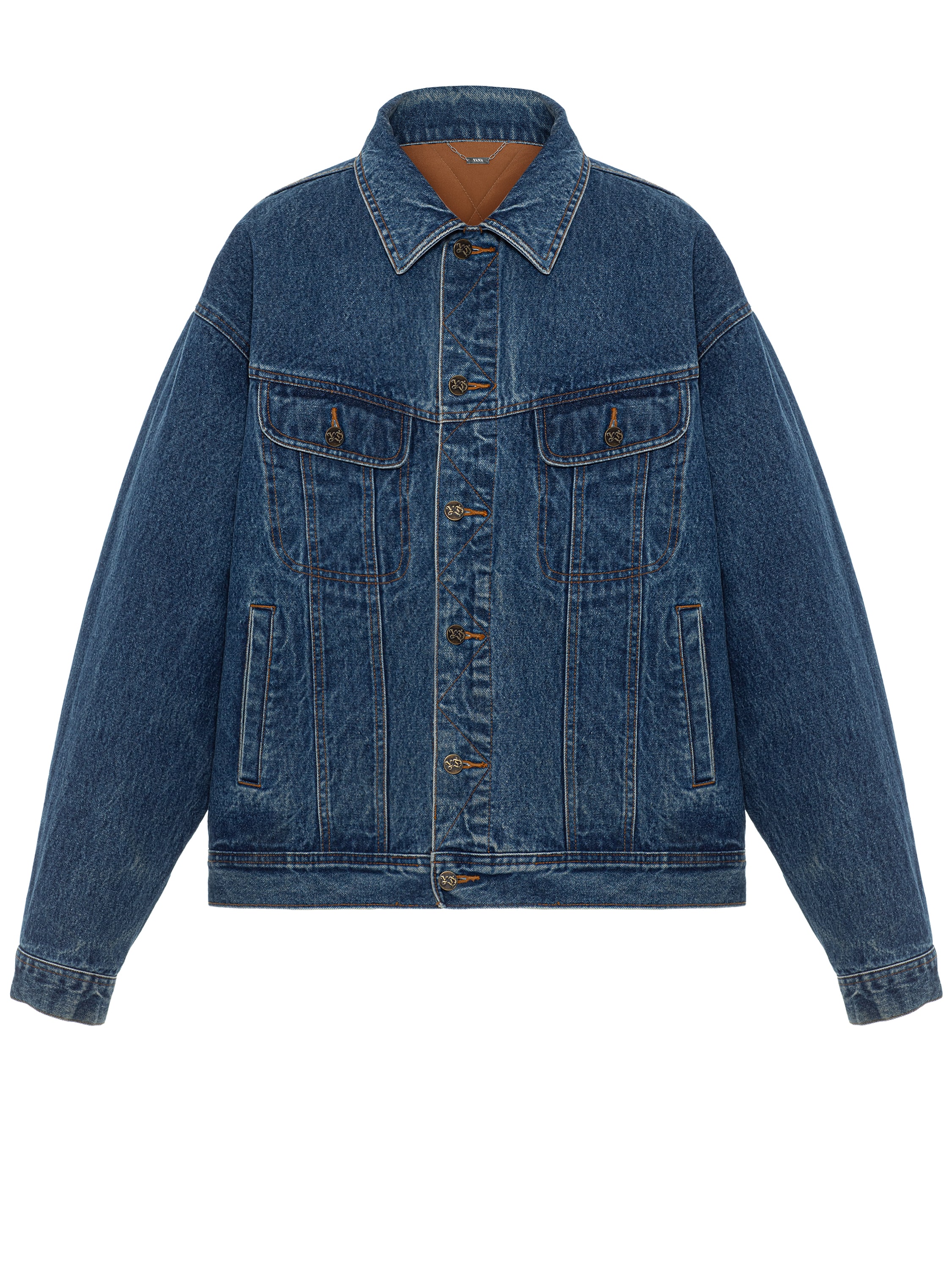 A blue denim jacket can become a bright accent in an everyday look. Graceful embroidery in the form of a snake made of beads and crystals on the back. Practical denim and spectacular decor form a versatile basic item with a unique character. The embroidery took the Yana fashion house artisans 260 hours of handwork.