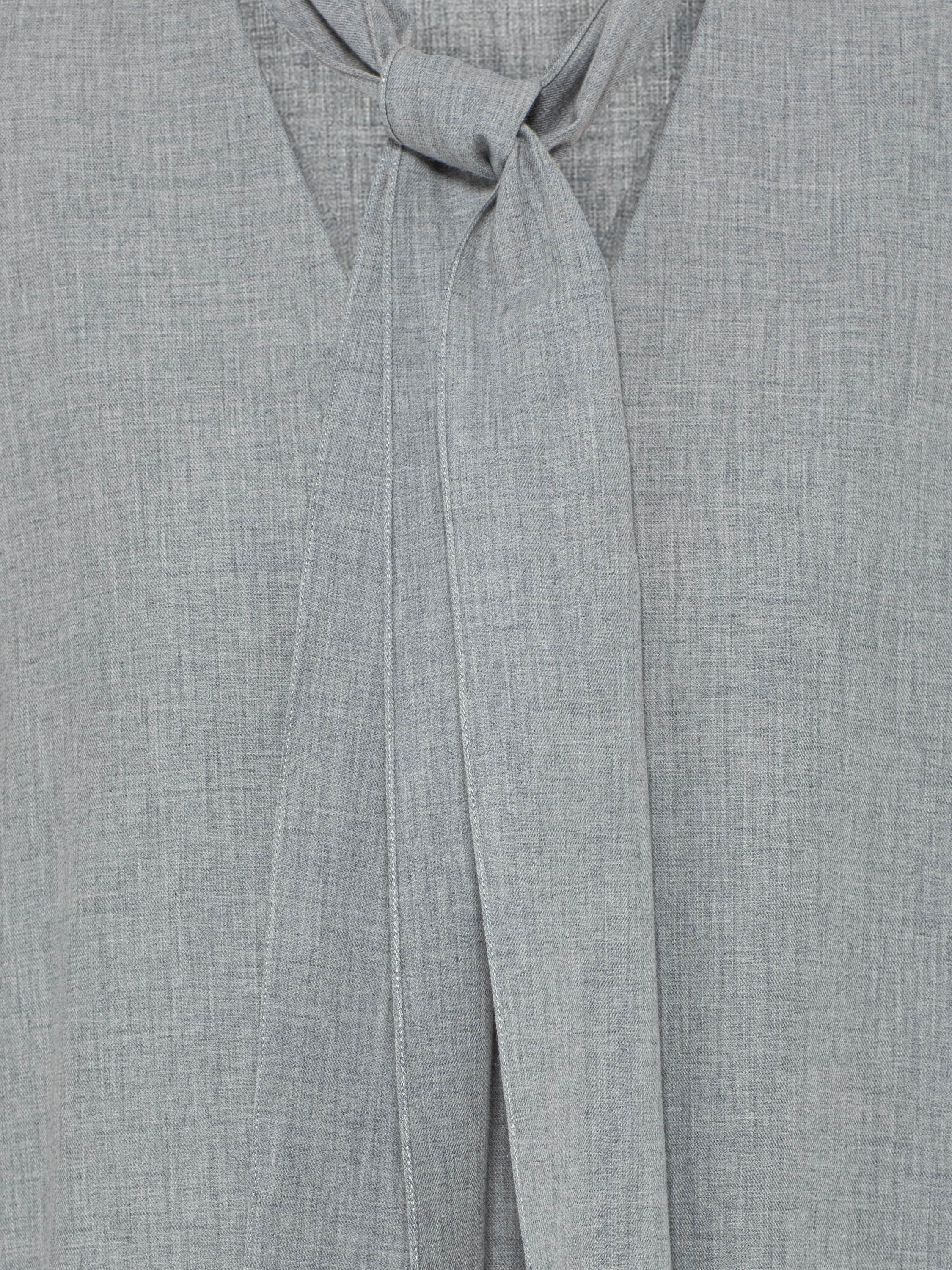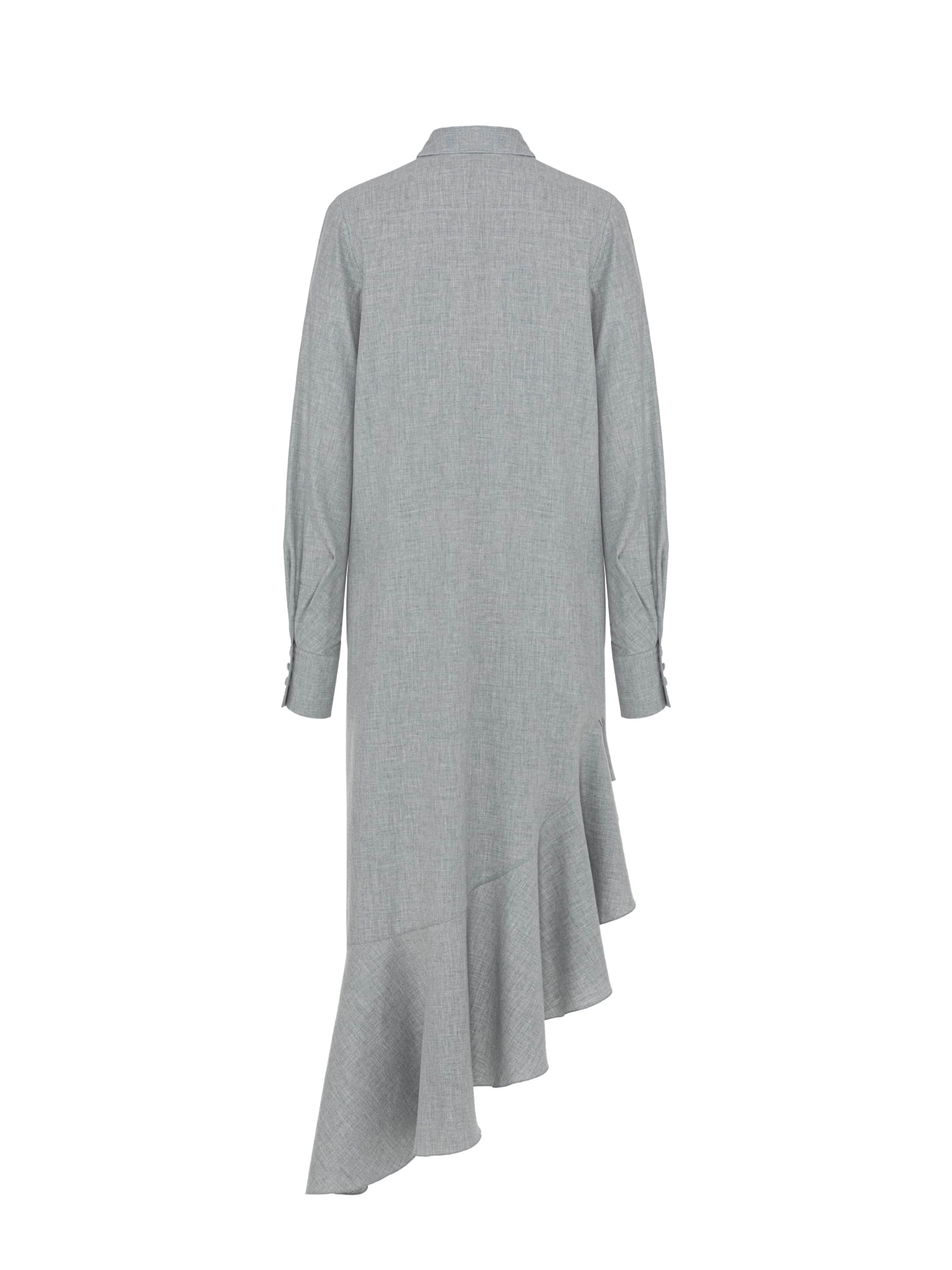 Gray Suiting Dress With Asymmetrical Hem And Tie