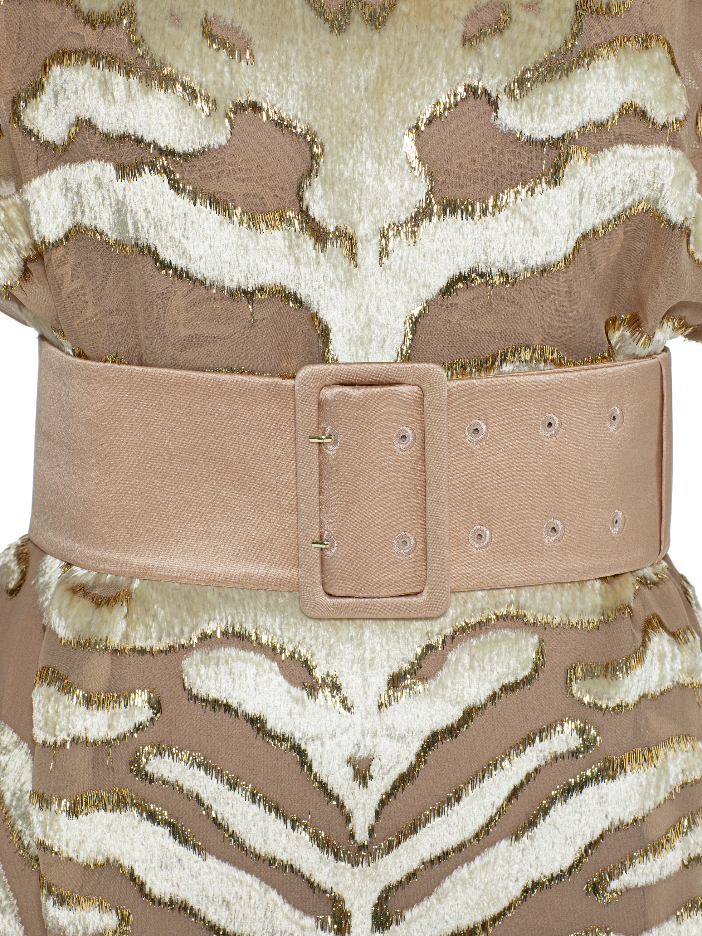 Beige devoré velvet midi dress