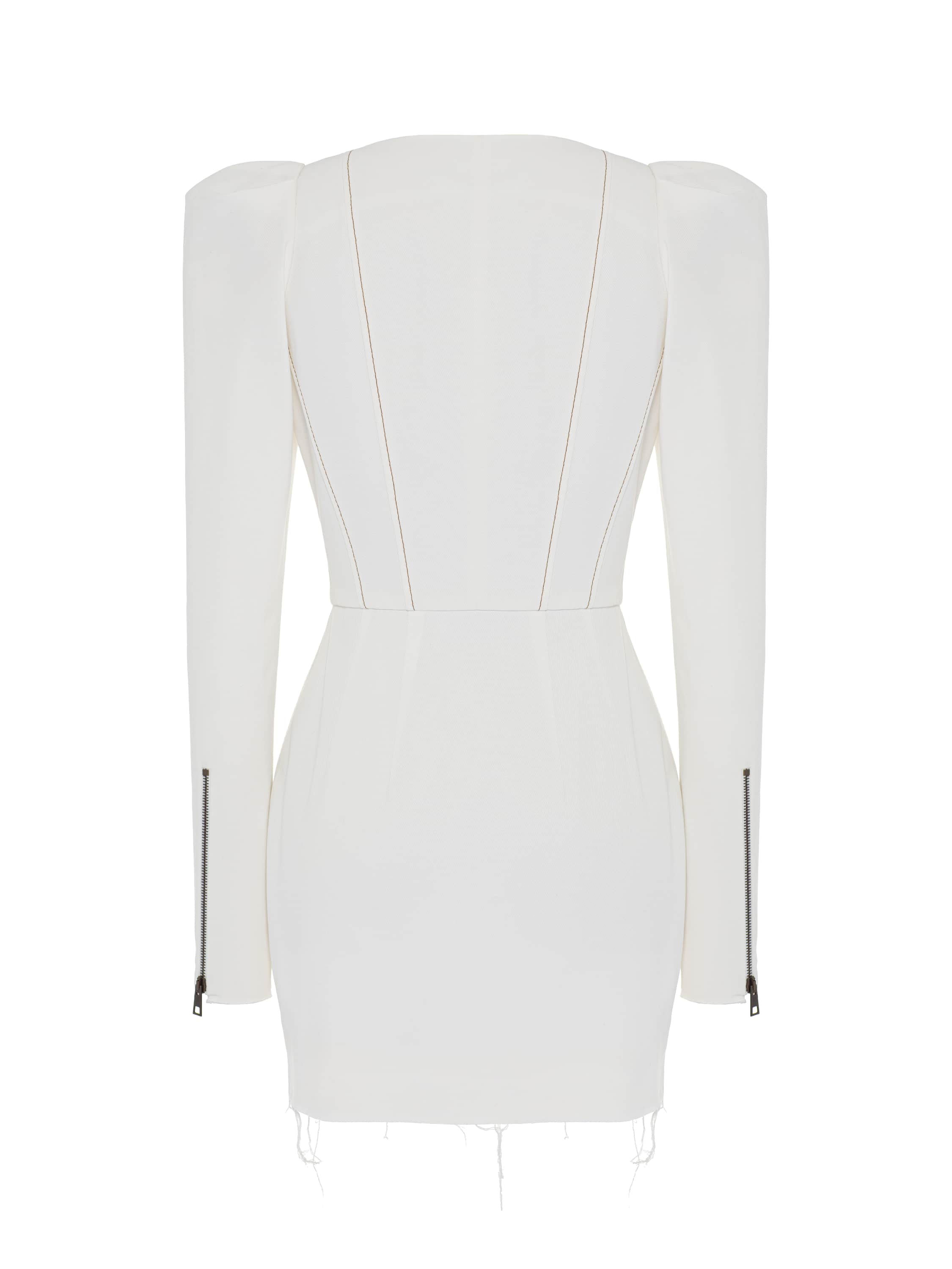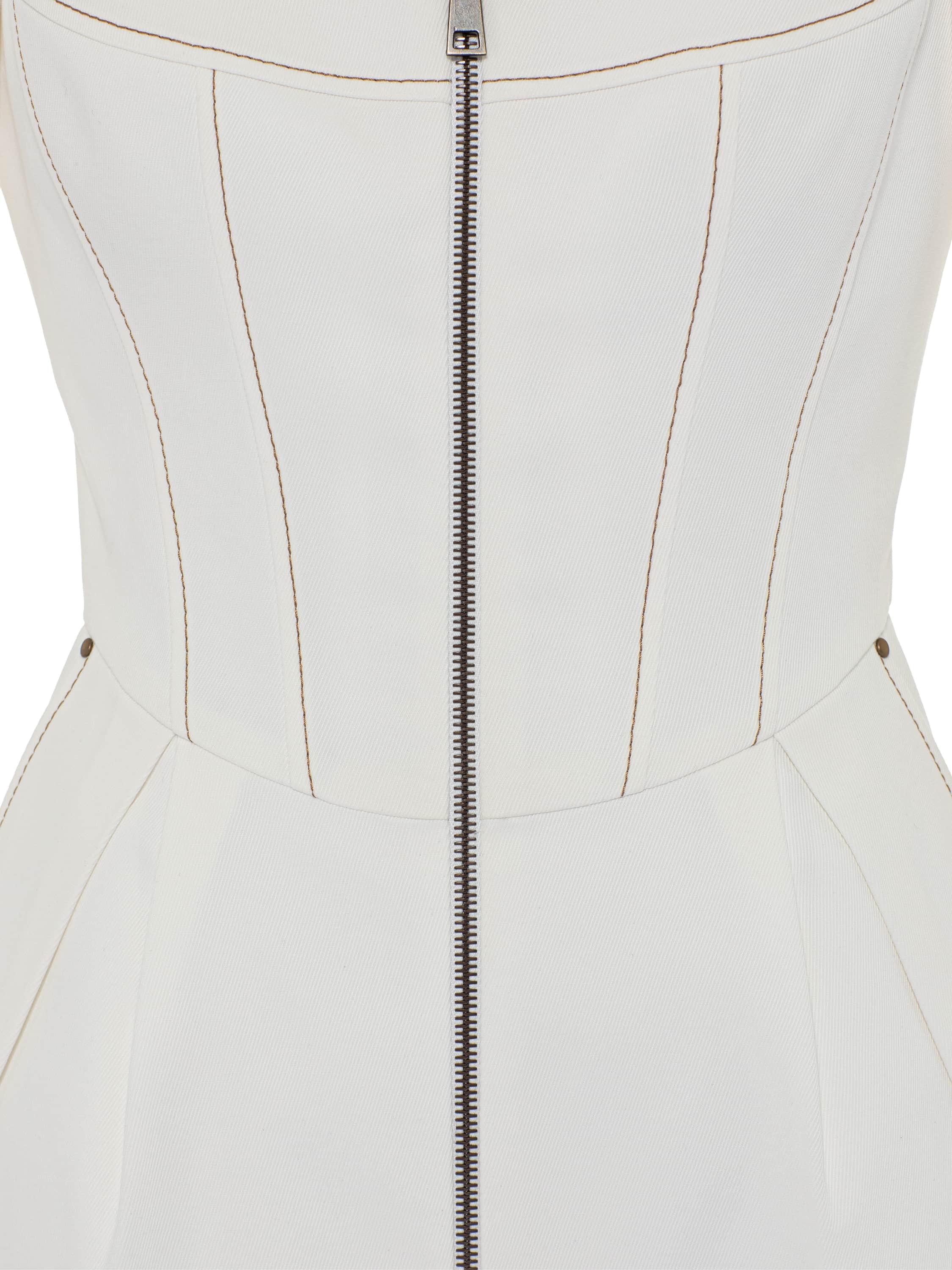 An elegant mini dress made of white denim will be the perfect choice for creating a stylish look. The laconic cut makes the model versatile for any occasion. Fastens with a zipper along the entire length at the front.
