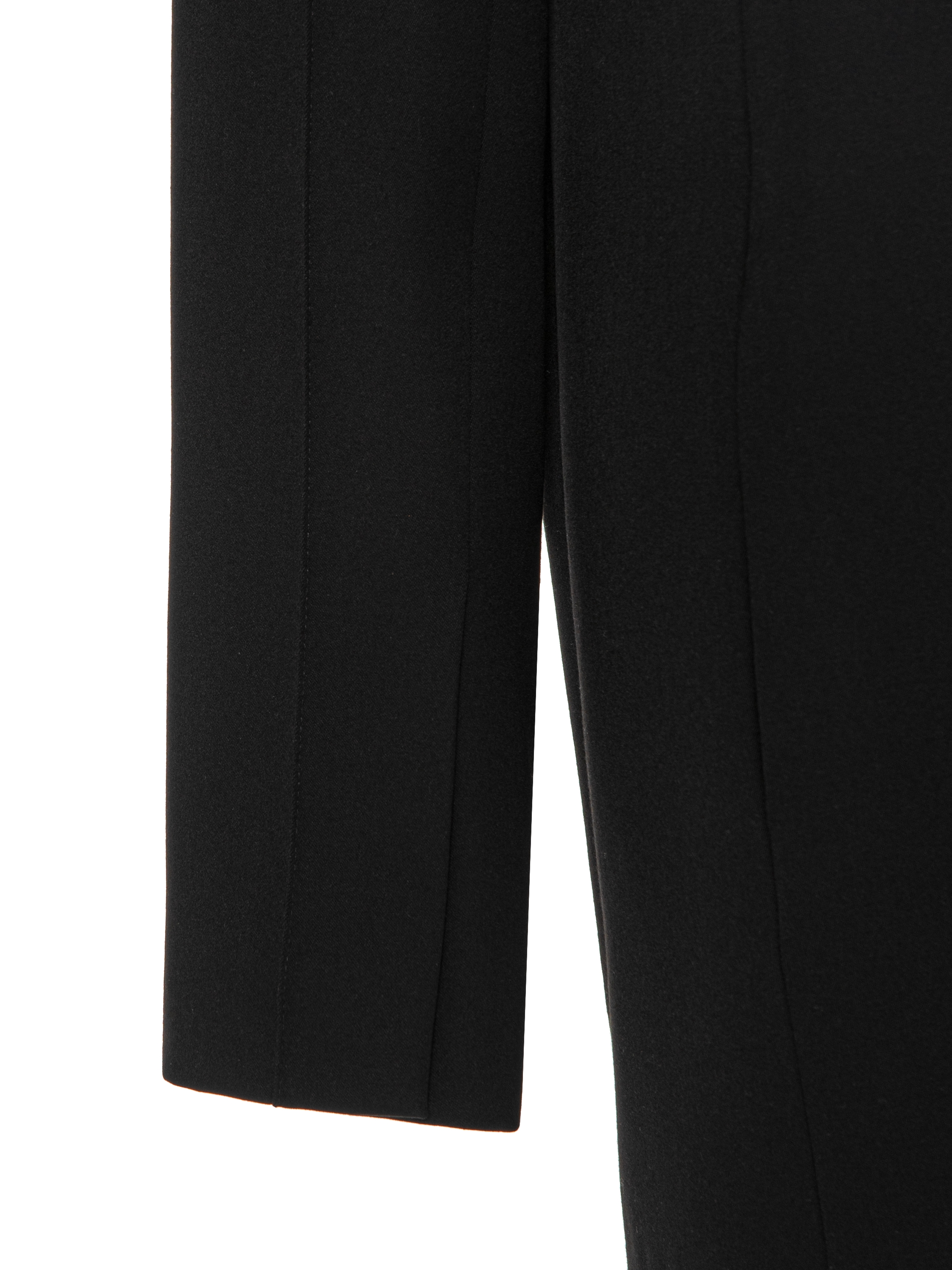 A minimalist mini-length dress is made in the style of a blazer from wool suiting fabric. Durable polyamide and elastane are added to the composition of the material, which guarantees longevity and a flawless fit. Tailoring details — shaped seams and pronounced voluminous shoulders — give the model a strict character. Fastens with a concealed zipper at the back.