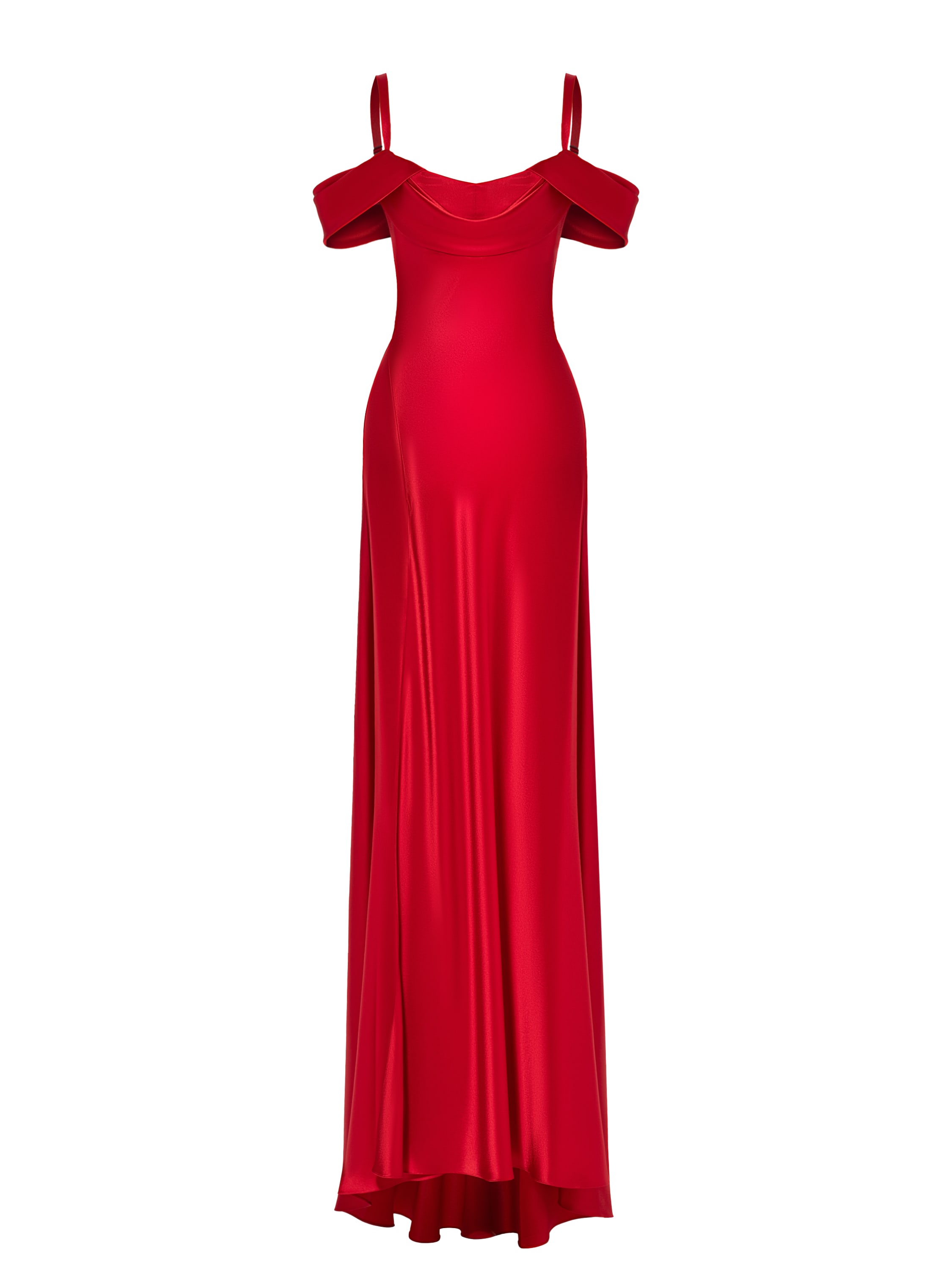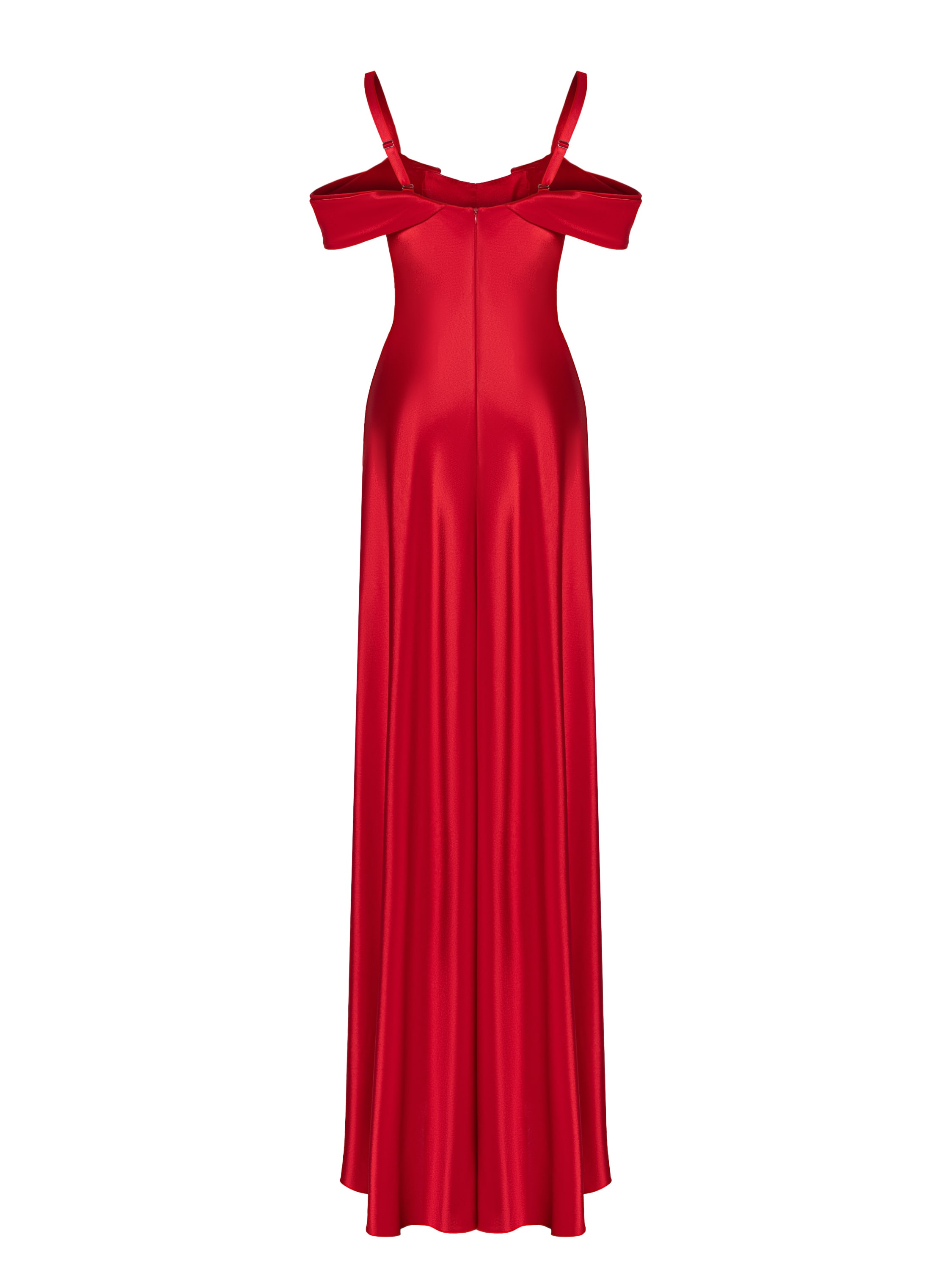 A red silk maxi dress with a corset bodice guarantees a flawless evening look. Elegant draping gently accentuates the décolleté area. Fastens with a concealed zipper at the back.