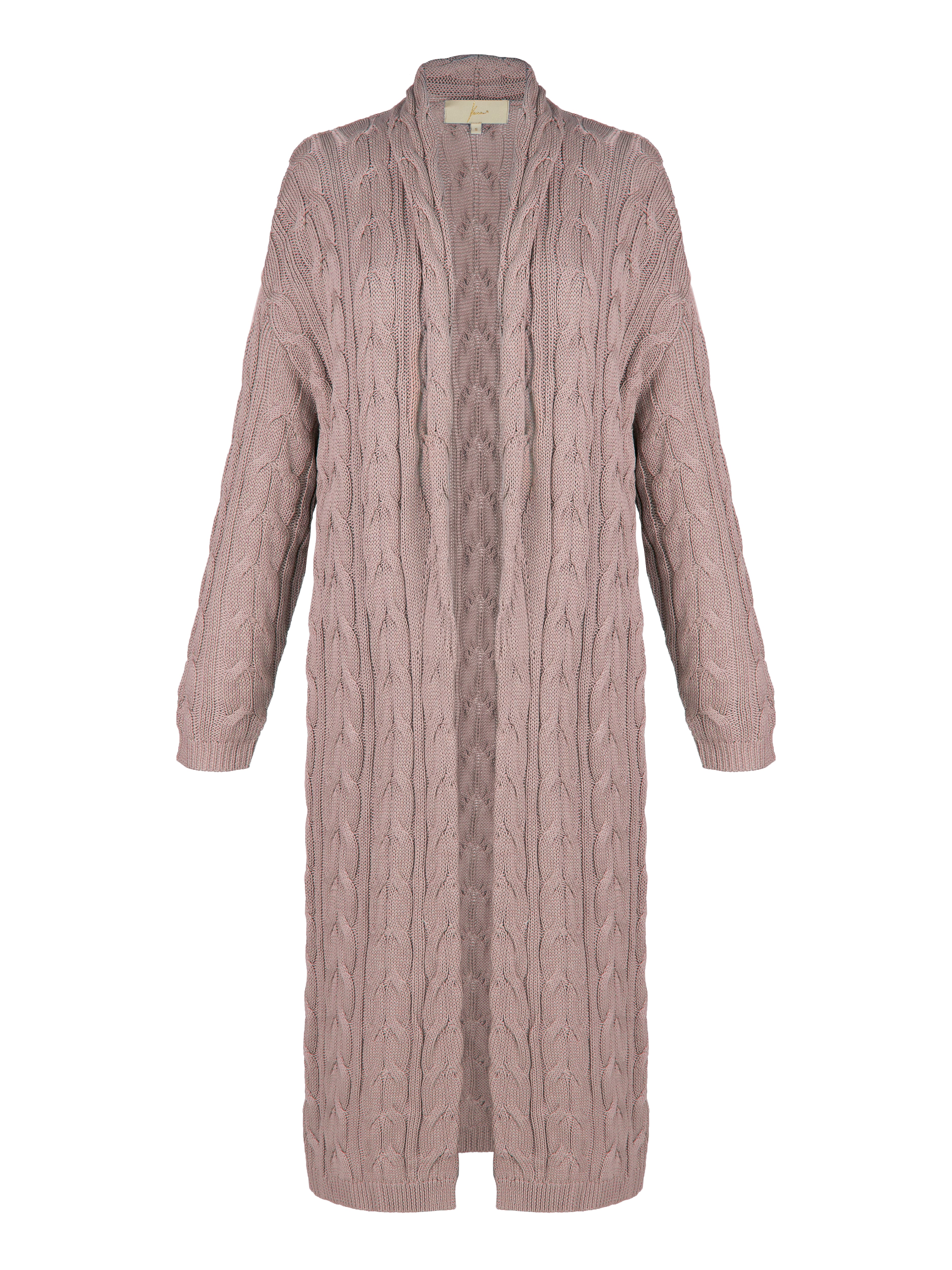 Dust Pink Tencel & Silk Cable Knit Long Cardigan