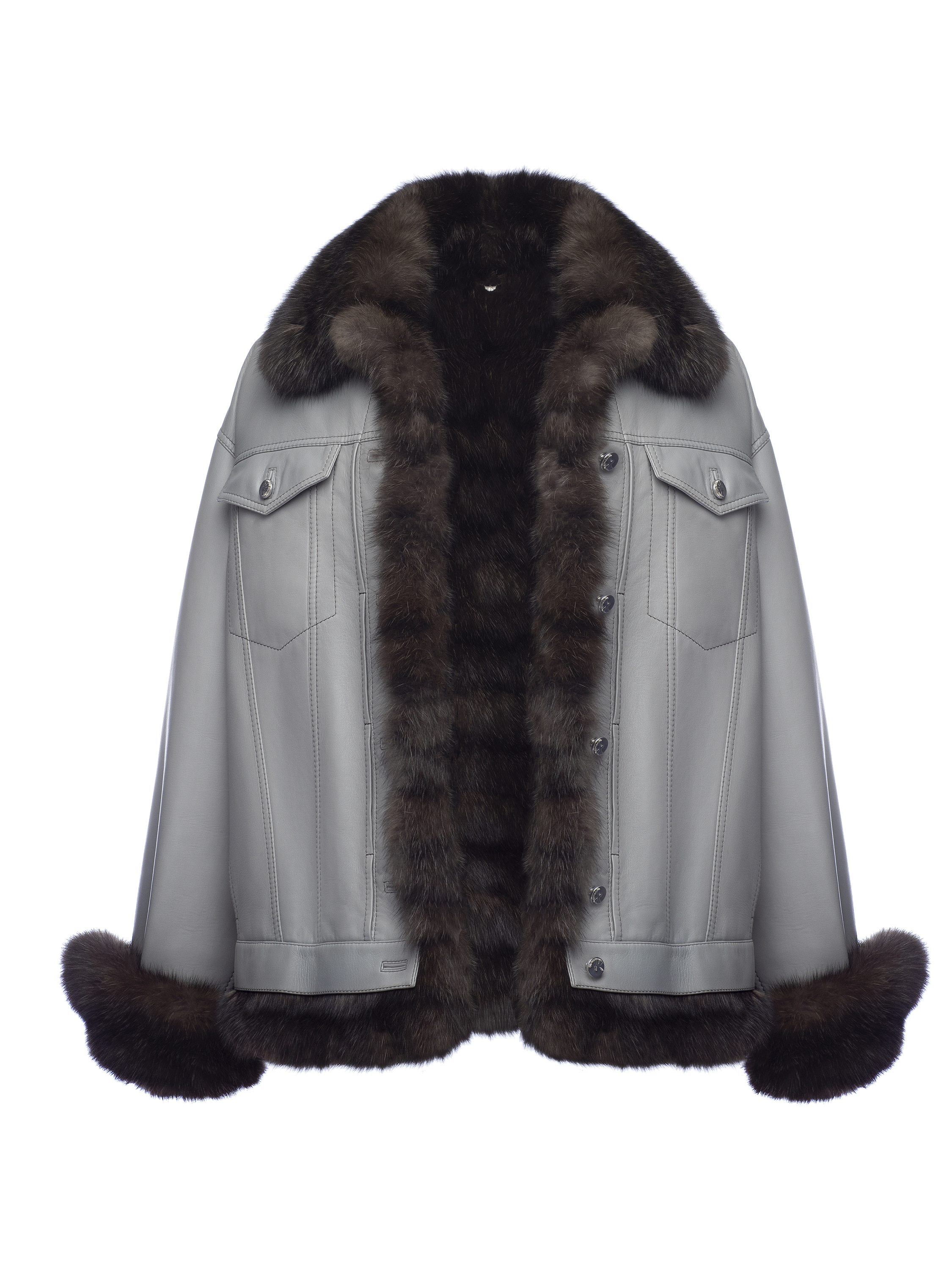 Grey Sable Fur Leather Jacket