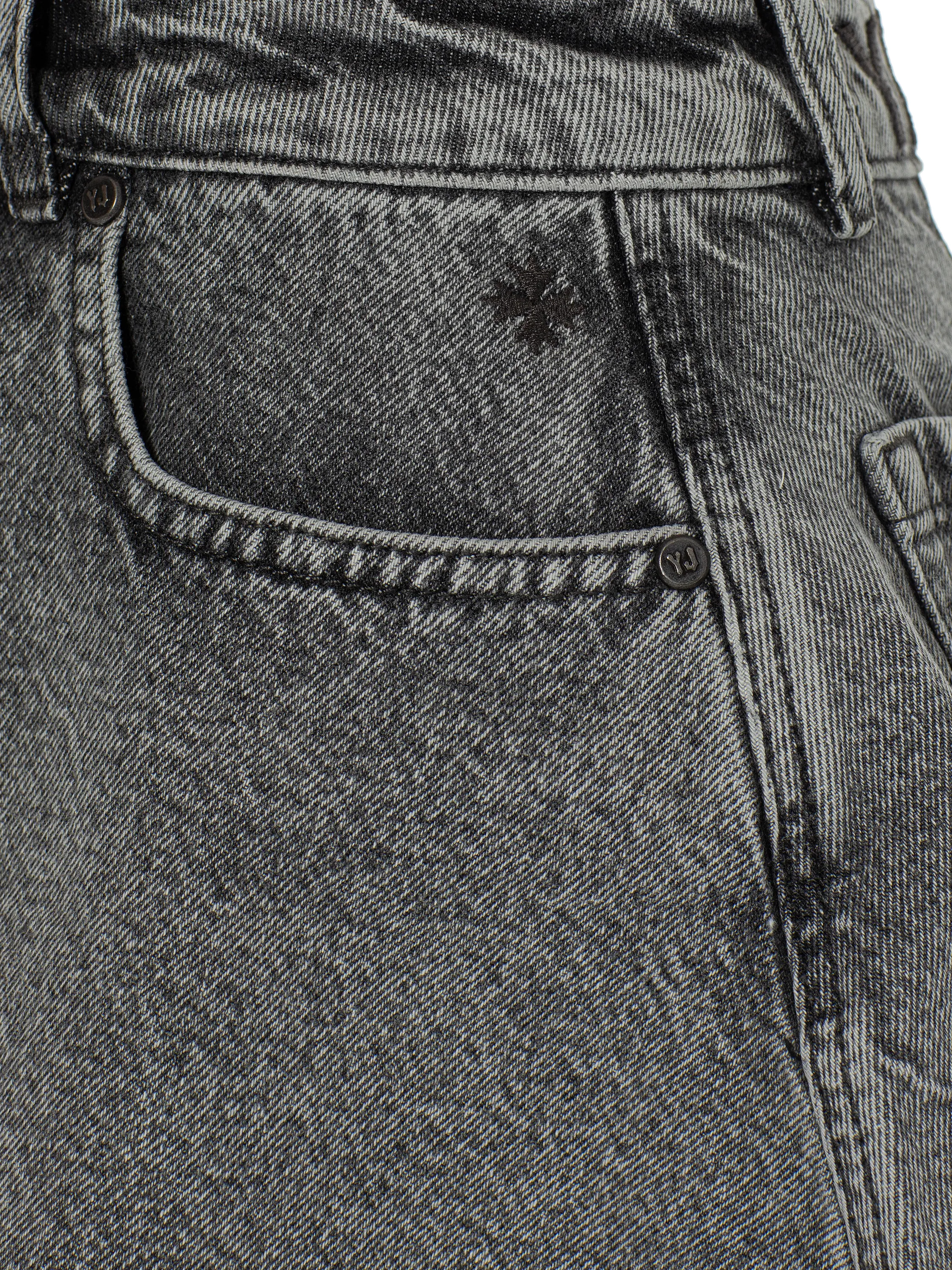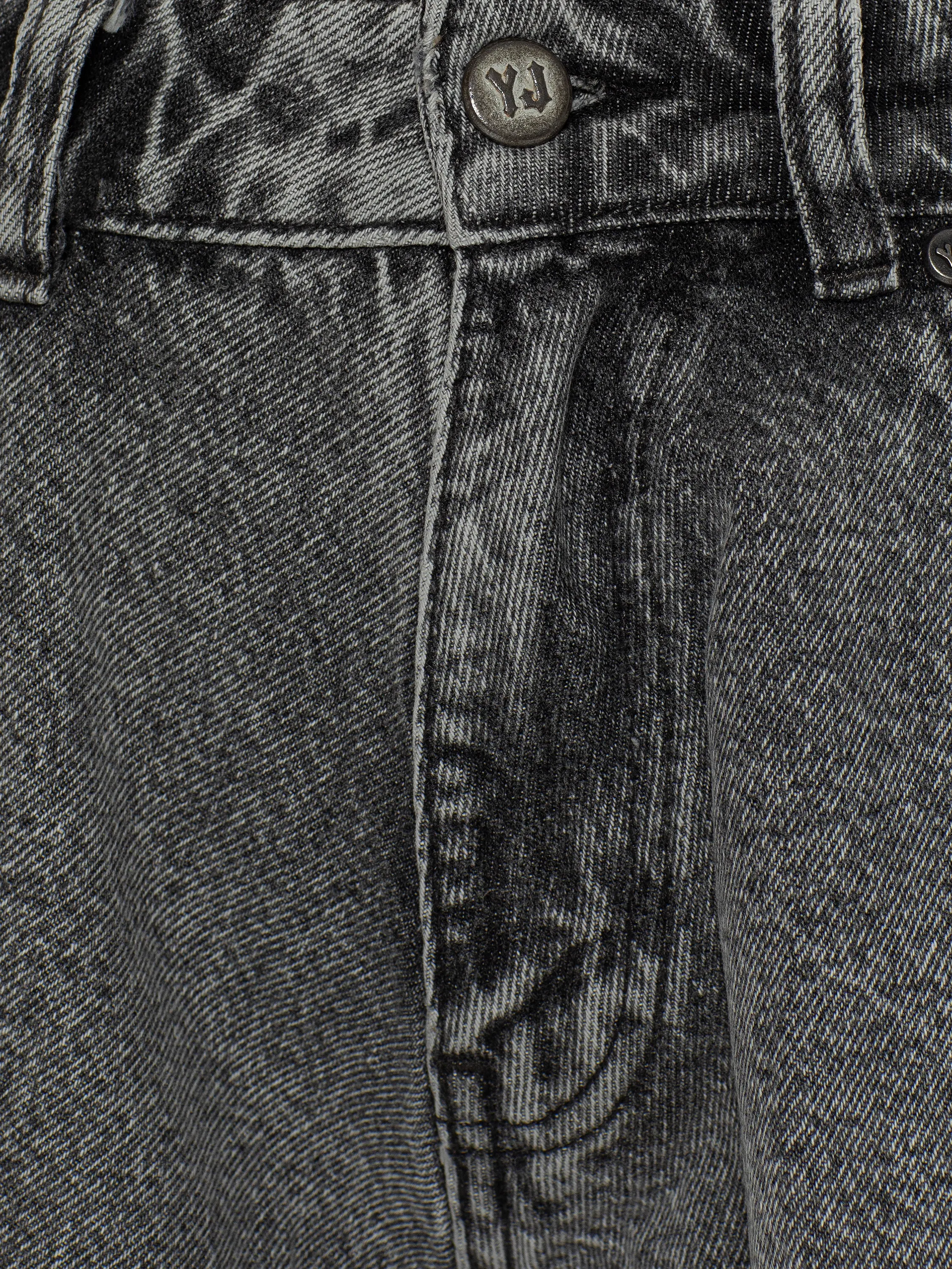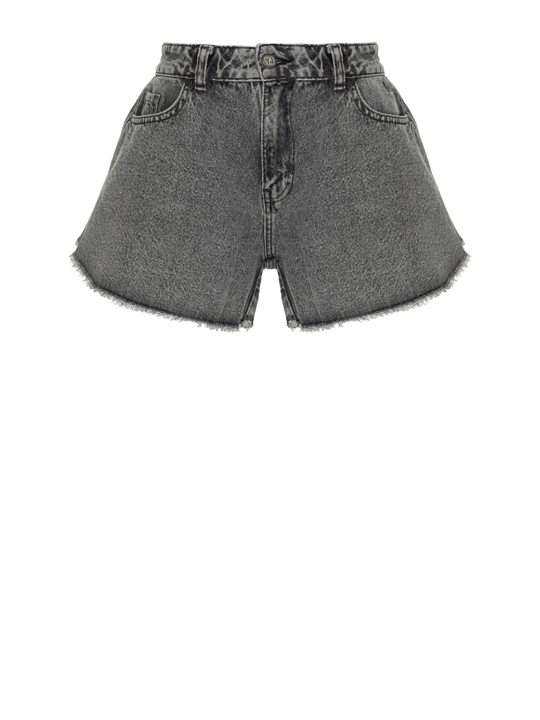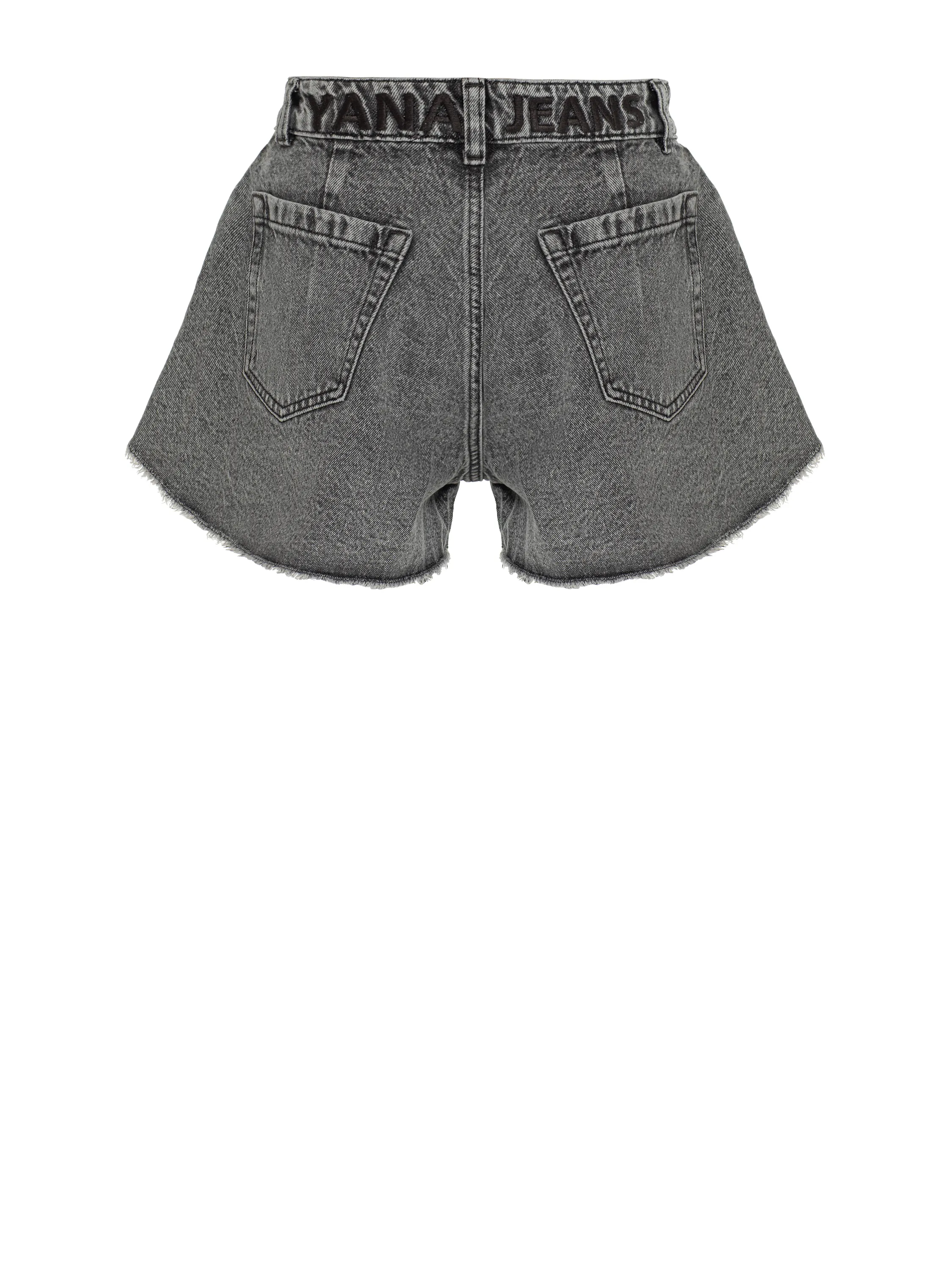 Short grey denim shorts are an absolute must-have for hot weather. The basic model with a classic rise is complemented by fringe along the hem and a Yana Jeans inscription on the waistband. The shorts are easy to combine both with fitted tops and oversized T-shirts.
