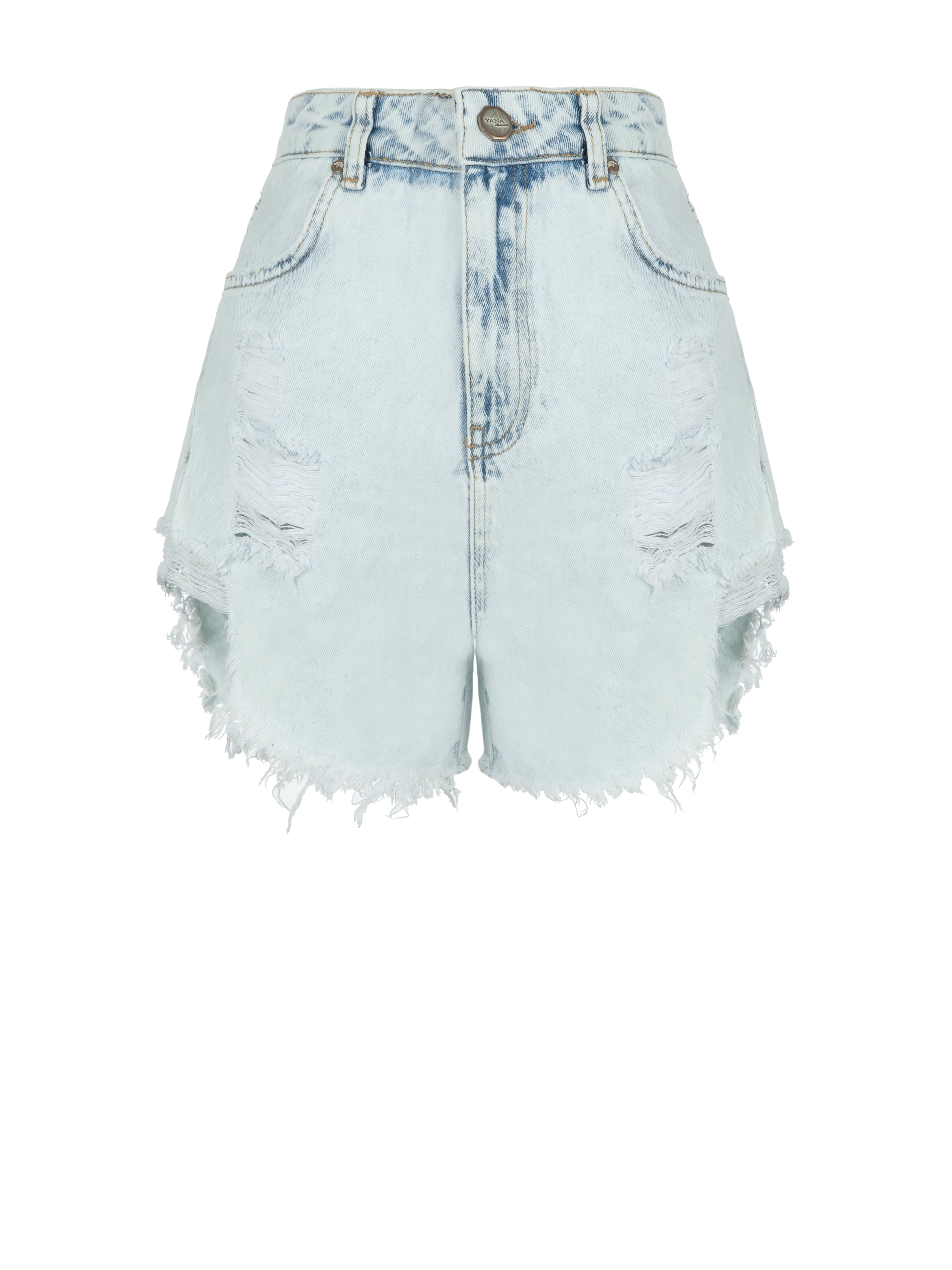 A summer addition to the Yana Jeans line — short denim shorts with raw hems made of light blue denim. An indispensable part of any summer wardrobe, these shorts have a deeper cut at the sides and sensually reveal the thigh. High-rise model.