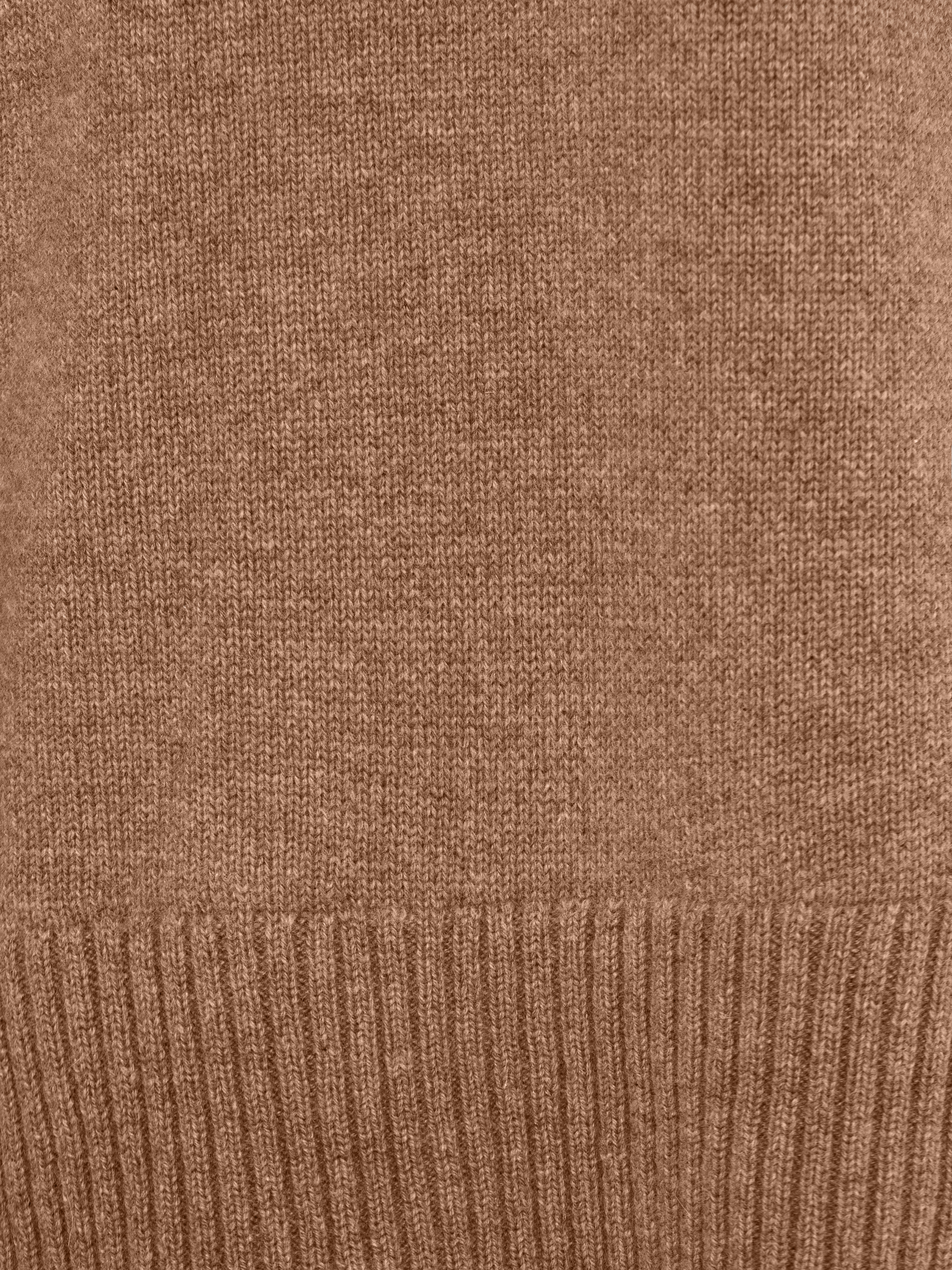 A cozy high-neck light brown sweater is made of 100% premium-quality royal cashmere. The fine, silky, almost weightless yarn reliably retains warmth and maintains a comfortable microclimate while allowing the skin to breathe. The material is highly durable, does not wrinkle and does not lose its shape. The basic model is relevant for any wardrobe and suits all body types.