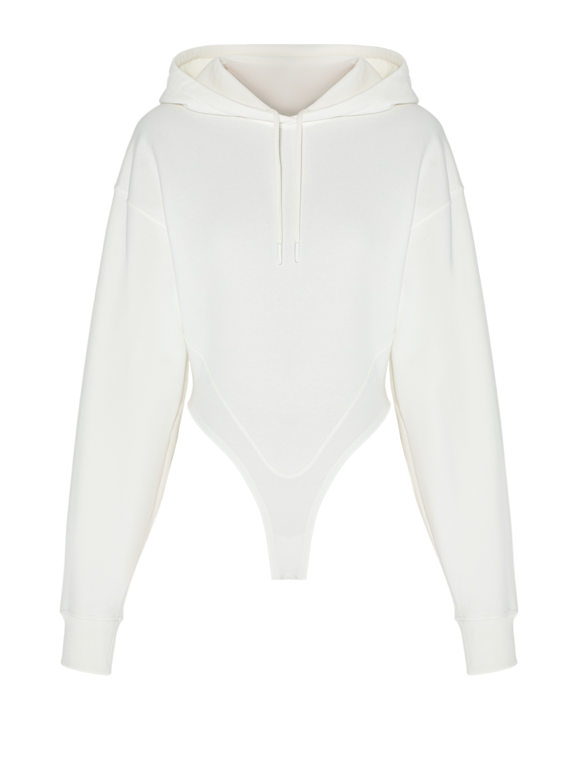 Soft cotton footer was used to sew the hoodie bodysuit. The minimalist model is complemented by embroidery with the brand's logo. Complete the look with sports trousers from the new collection in the same shade — and you will get a harmonious total look in the spirit of Sport Chic.