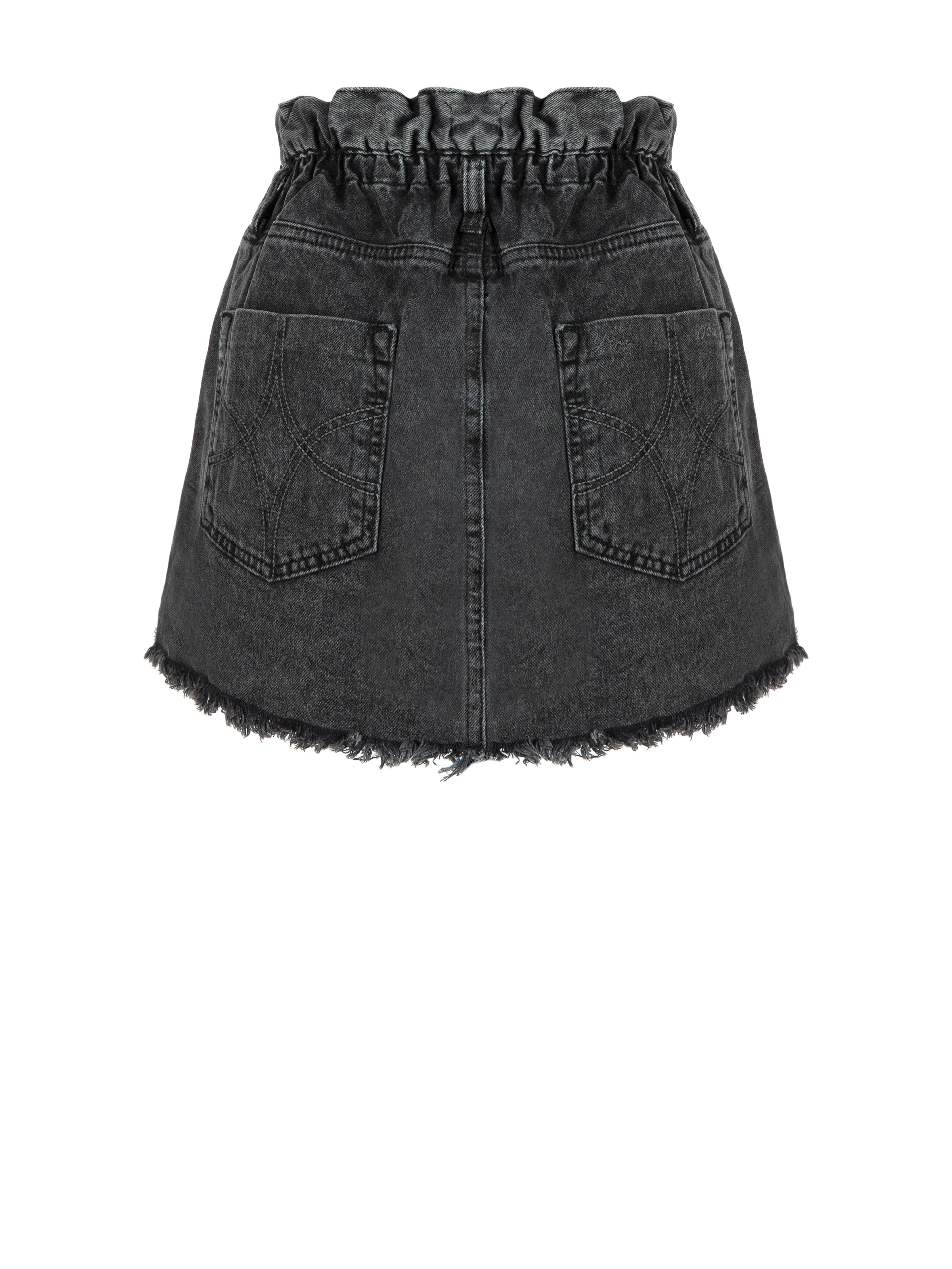 A summer addition to the Yana Jeans line — a denim mini skirt with raw edges made of dark grey denim. An indispensable part of any summer wardrobe. The skirt is complemented with an elastic waistband for a more comfortable fit.