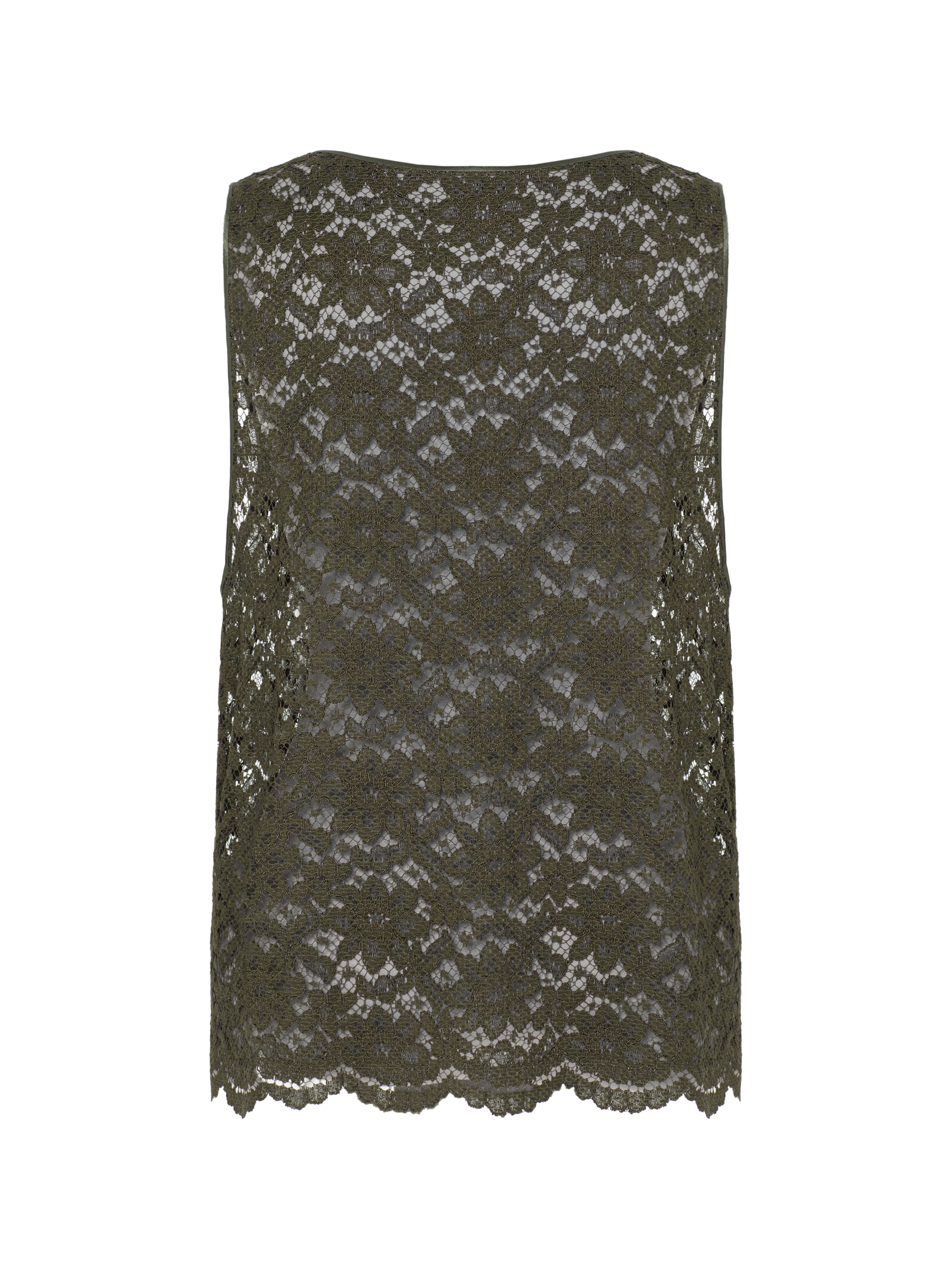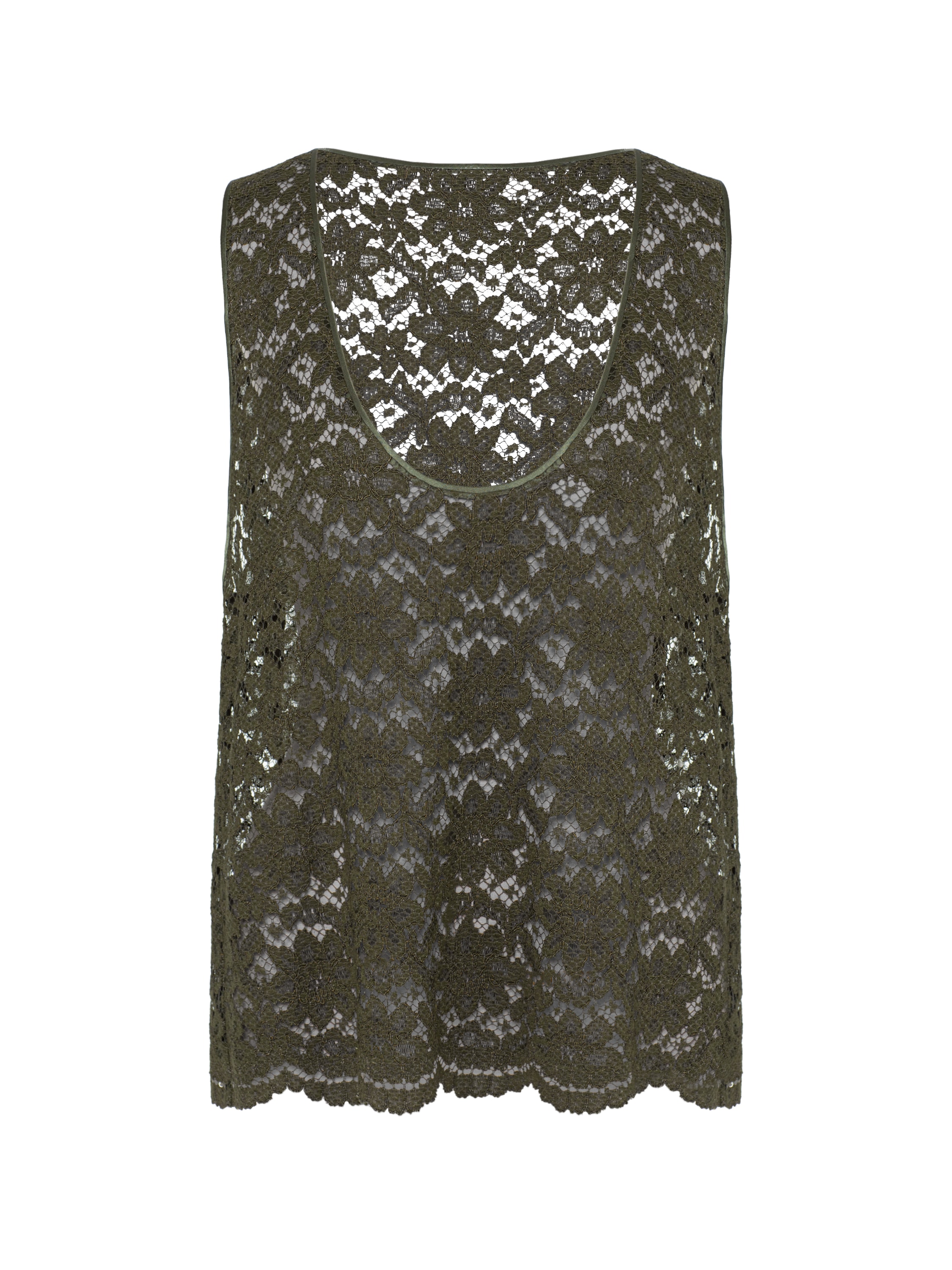 An elegant top made of khaki lace will be a perfect foundation for any look. The piece is complemented by delicate scalloped trim along the hem.