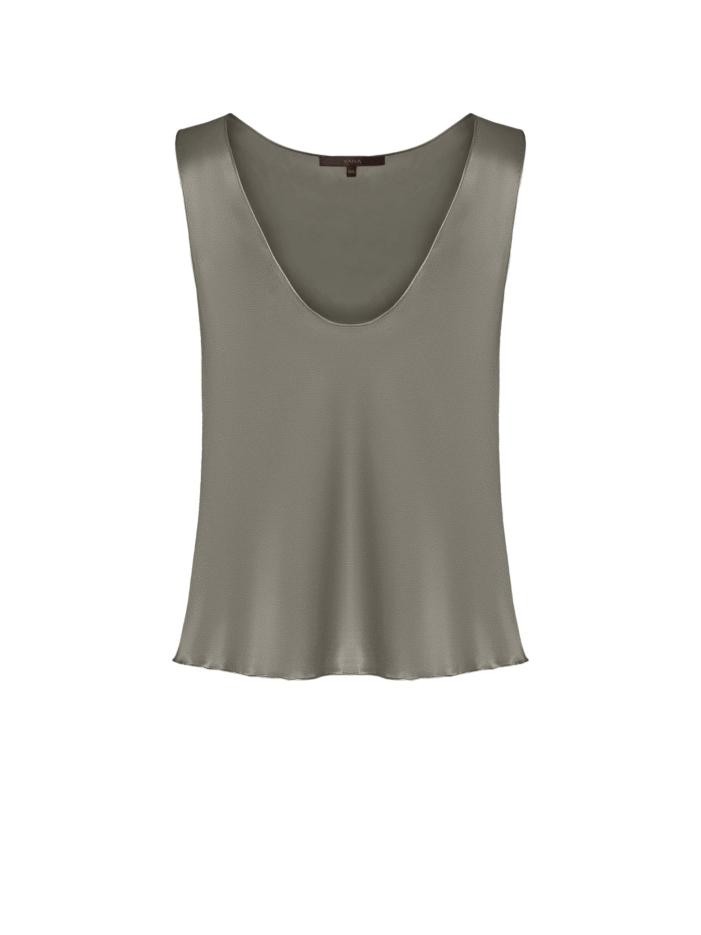 A gray silk top will become an indispensable base of any wardrobe. The elegant simplicity of the design makes it an ideal choice for the office, formal events or casual looks.