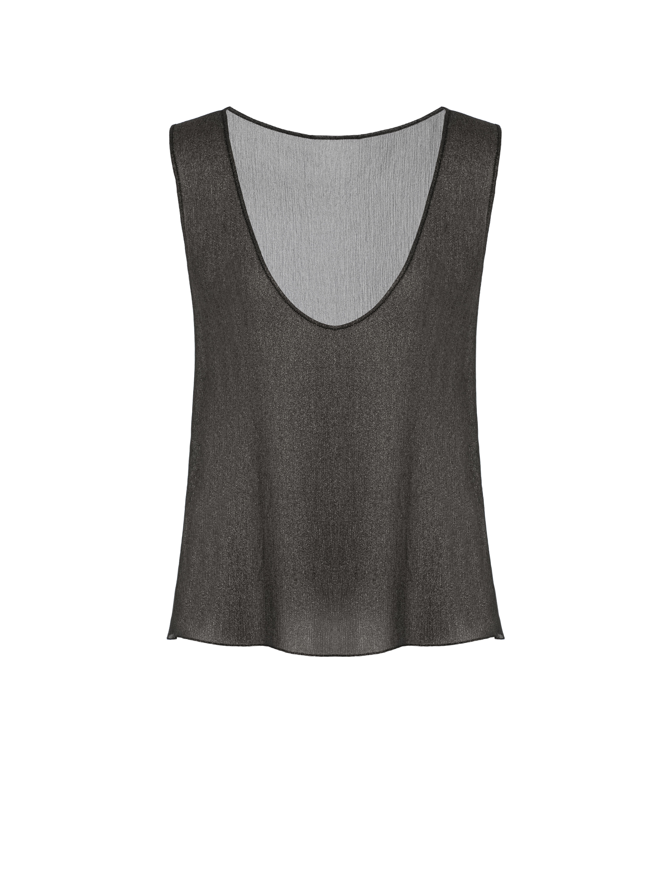 A minimalistic chiffon top with a silver coating will become an indispensable base in any wardrobe. The versatile design is perfect for the office, special occasions or casual looks.