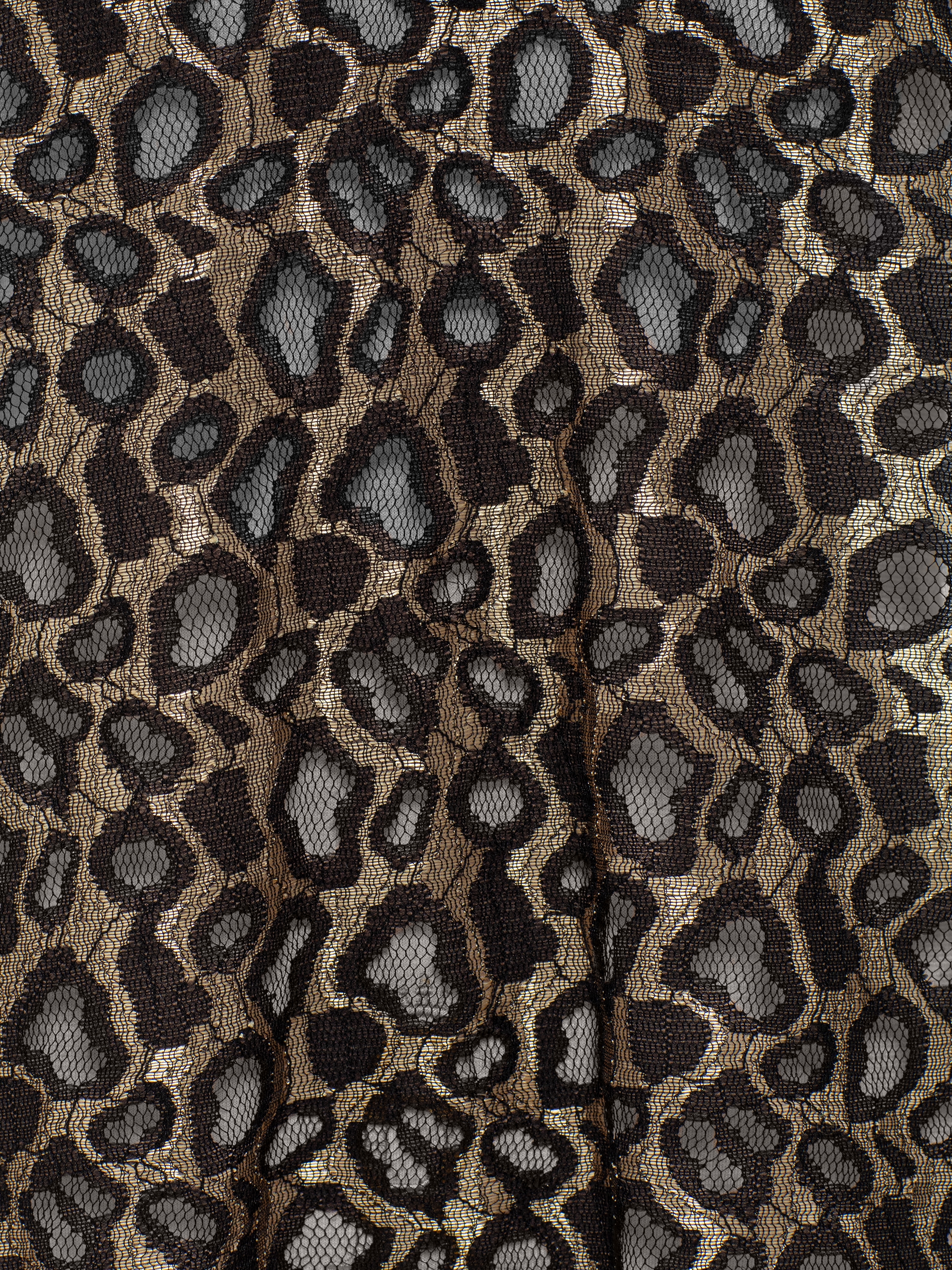 The gold top with a black leopard print can become a statement detail in an outfit with solid-colored pieces. The bold animal pattern is accentuated by the refined color palette.