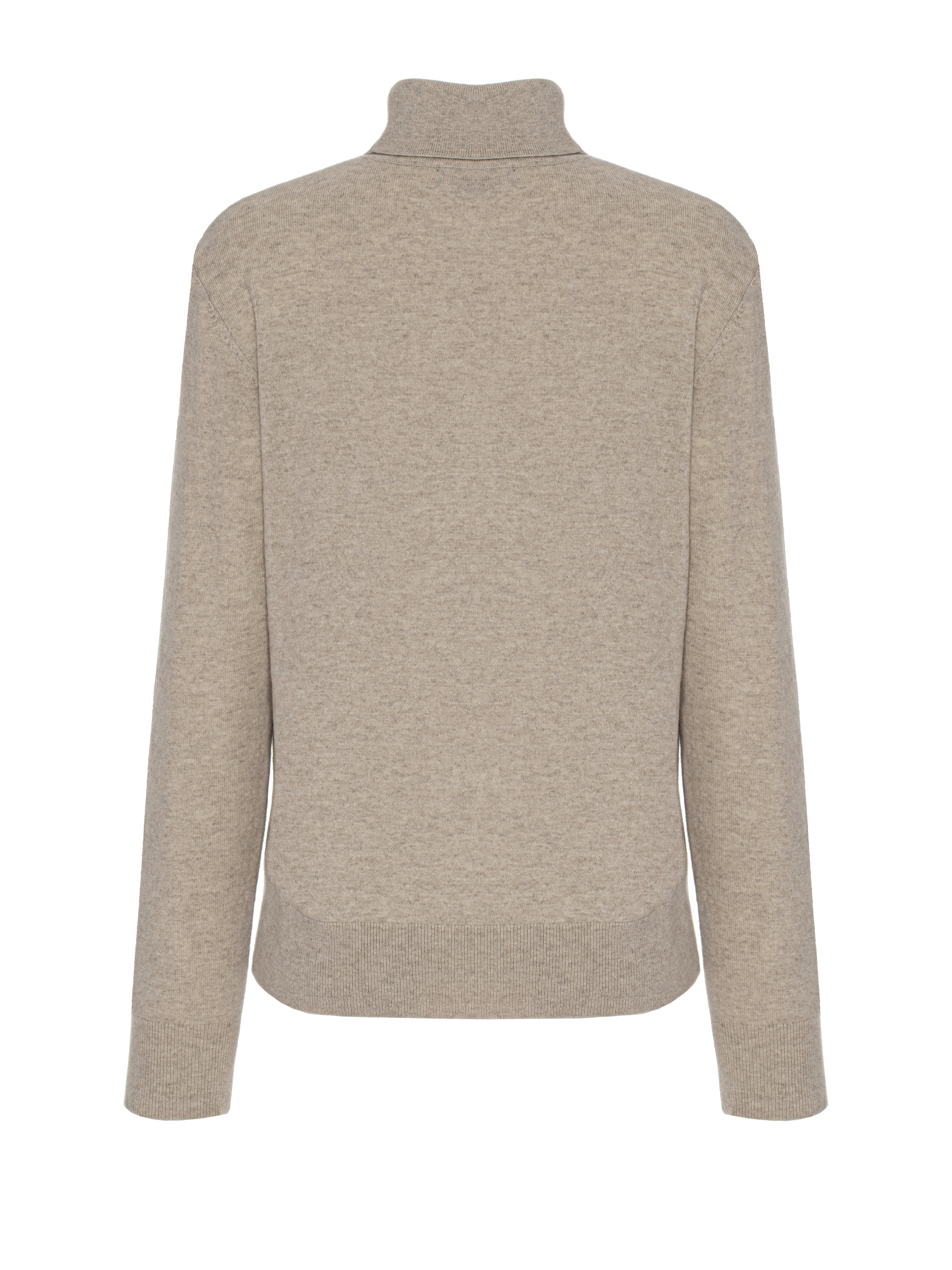 A cozy men’s sweater with a high neck in beige is made of 100% premium-quality baby cashmere. The fine, silky, almost weightless yarn reliably retains warmth and maintains a comfortable microclimate while allowing the skin to breathe. The material is highly durable, does not wrinkle, and does not lose its shape. This basic style is relevant for any wardrobe and suits all body types.