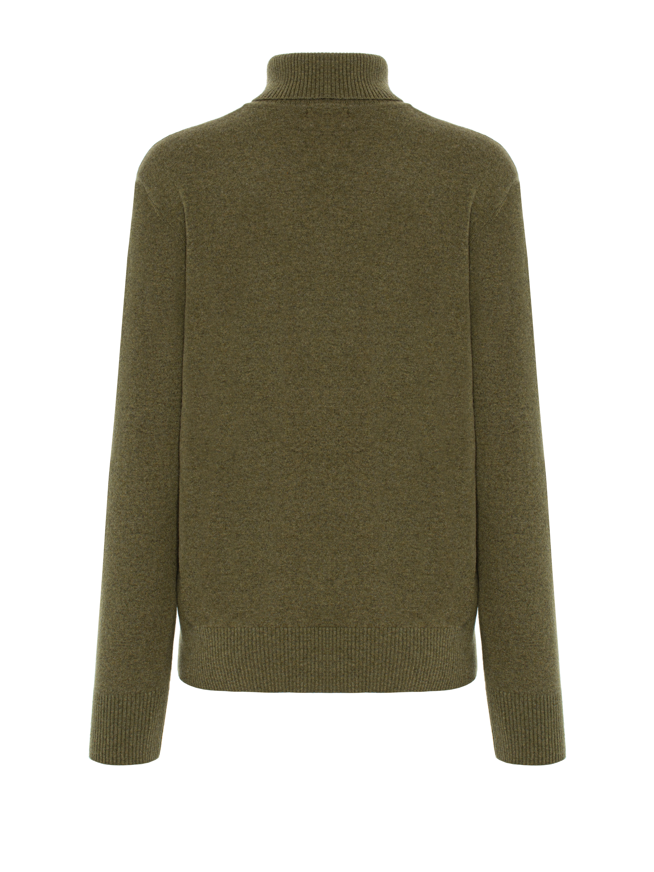 A cozy men’s sweater with a high neck in green is made of 100% premium-quality baby cashmere. The fine, silky, almost weightless yarn reliably retains warmth and maintains a comfortable microclimate while allowing the skin to breathe. The material is highly durable, does not wrinkle, and does not lose its shape. This basic style is relevant for any wardrobe and suits all body types.