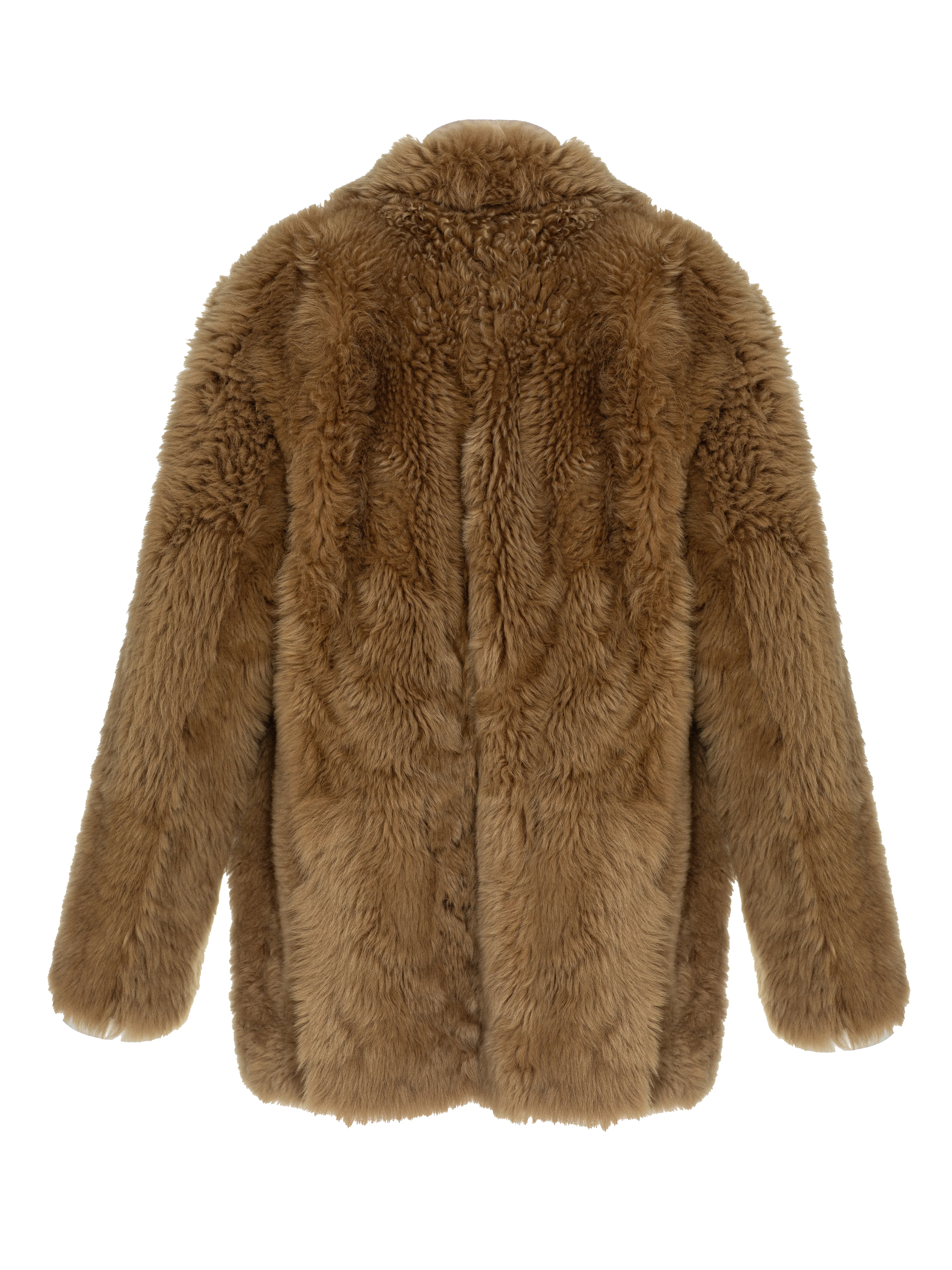 The oversized shearling jacket made of textured Toscana lambskin will become a striking detail of your cold-weather look. The versatile brown color allows you to combine the model with any pieces from your fall-winter wardrobe.