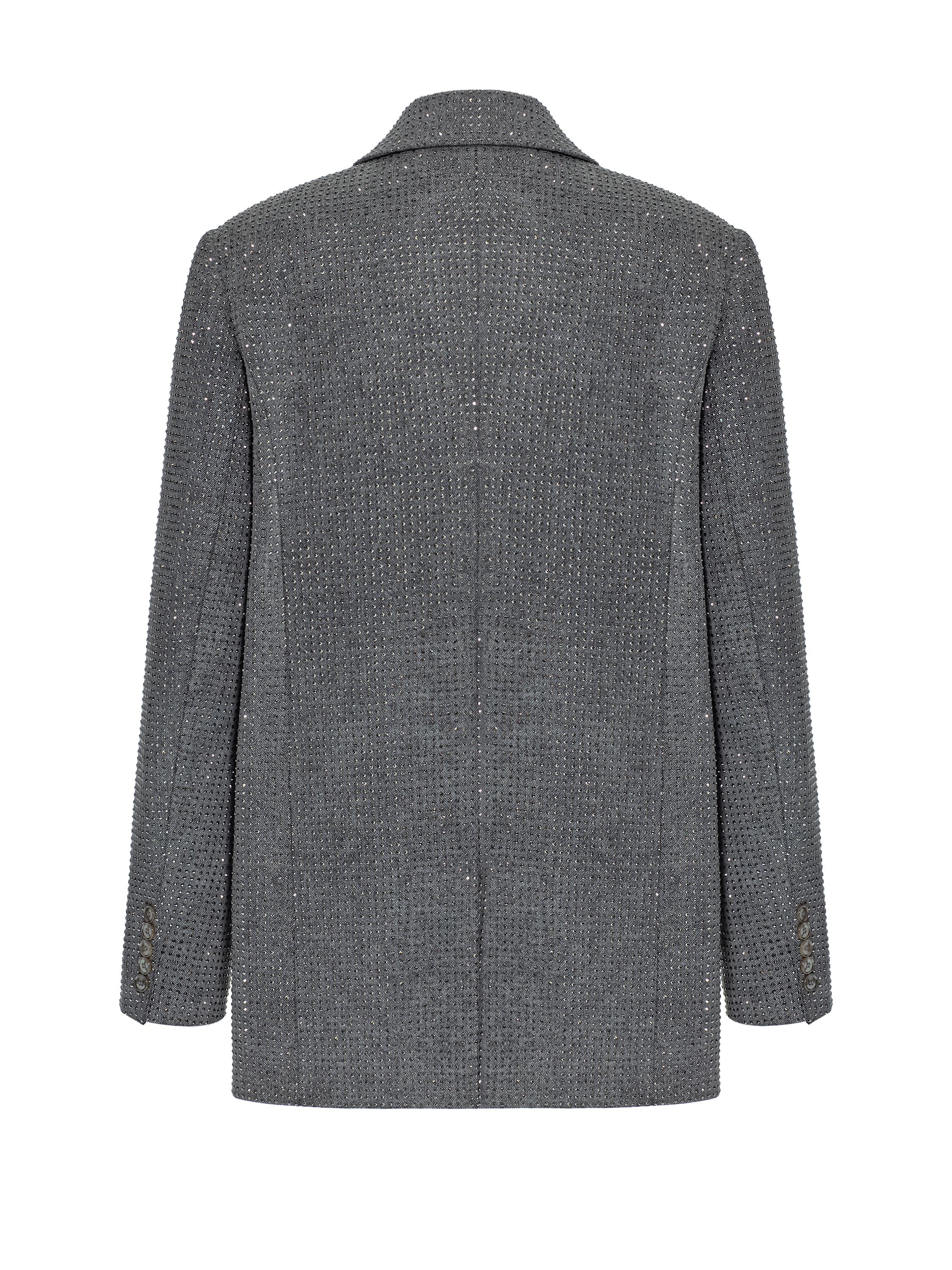 A grey oversized denim blazer will become a striking detail of your look. The model is complemented with an exquisite applique of shimmering crystals, which took the craftsmen of the Yana fashion house 115 hours of handwork.