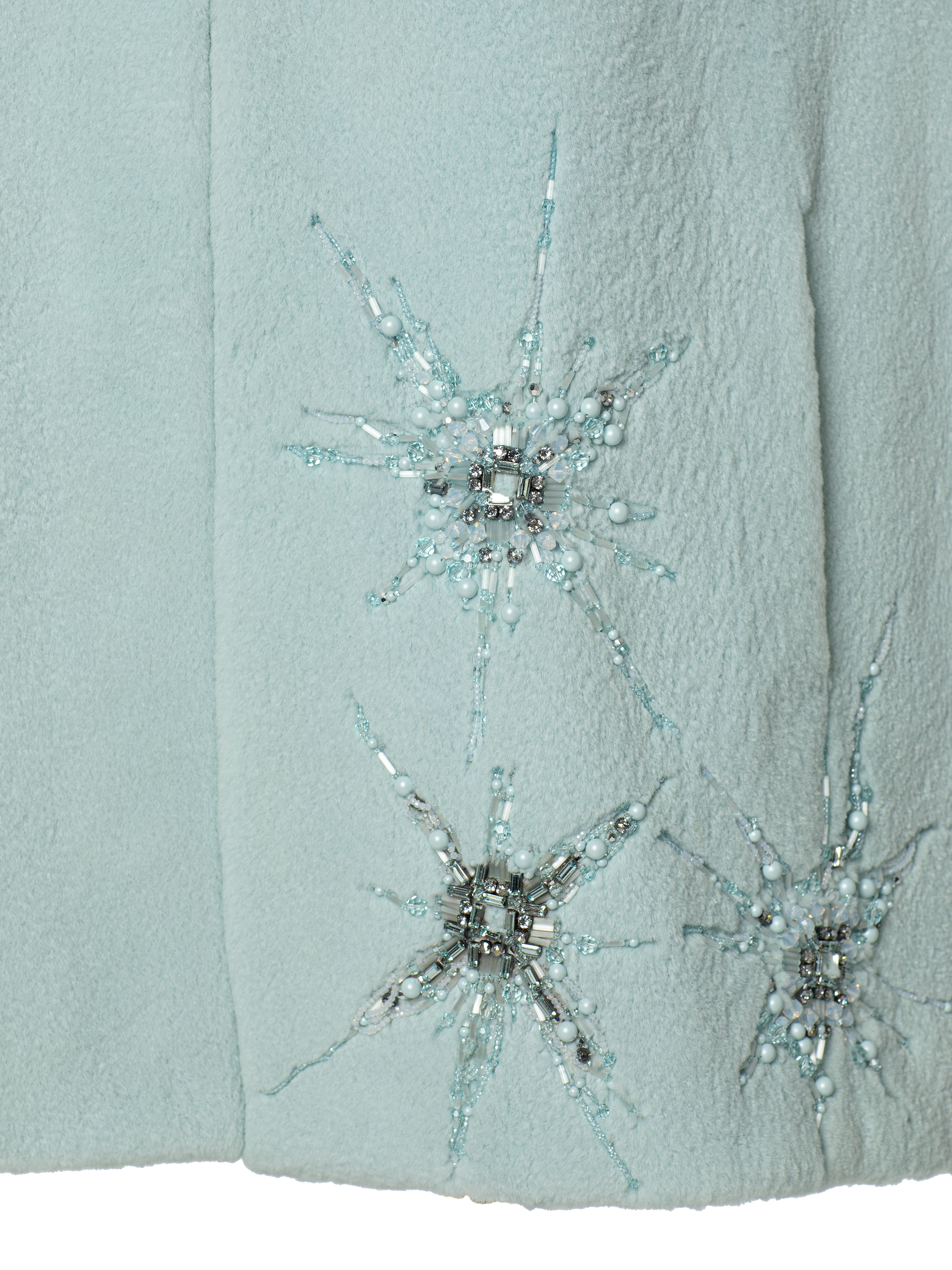A blue mink vest is decorated with refined hand-made embroidery in the form of shimmering stars. Noble fur and impeccable workmanship make this model truly unique. The decoration of the item took the craftsmen of the Yana fashion house 100 hours of handwork.