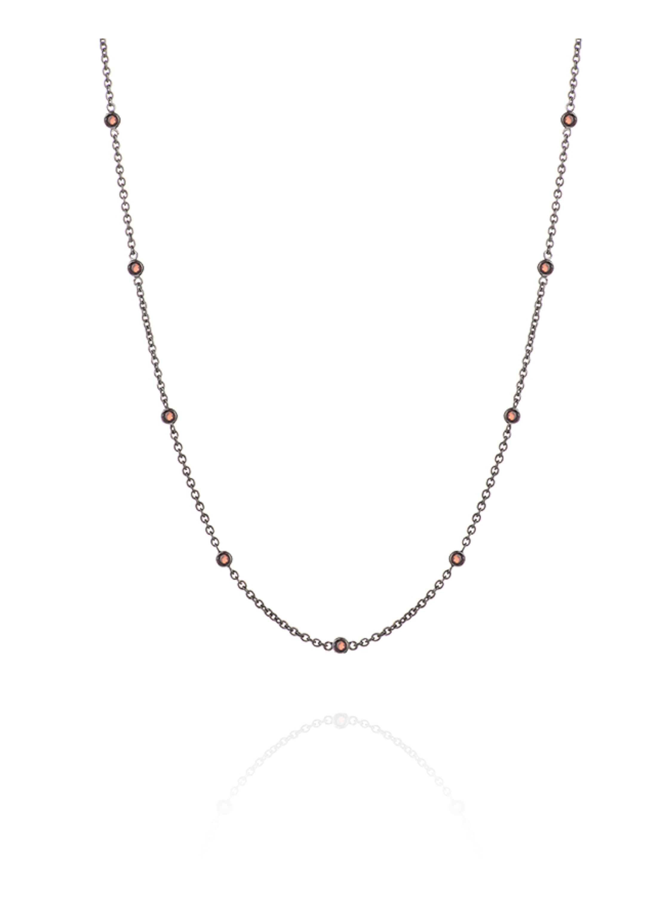 Necklace in blackened gold with 23 round-cut garnets weighing 1.22 ct.