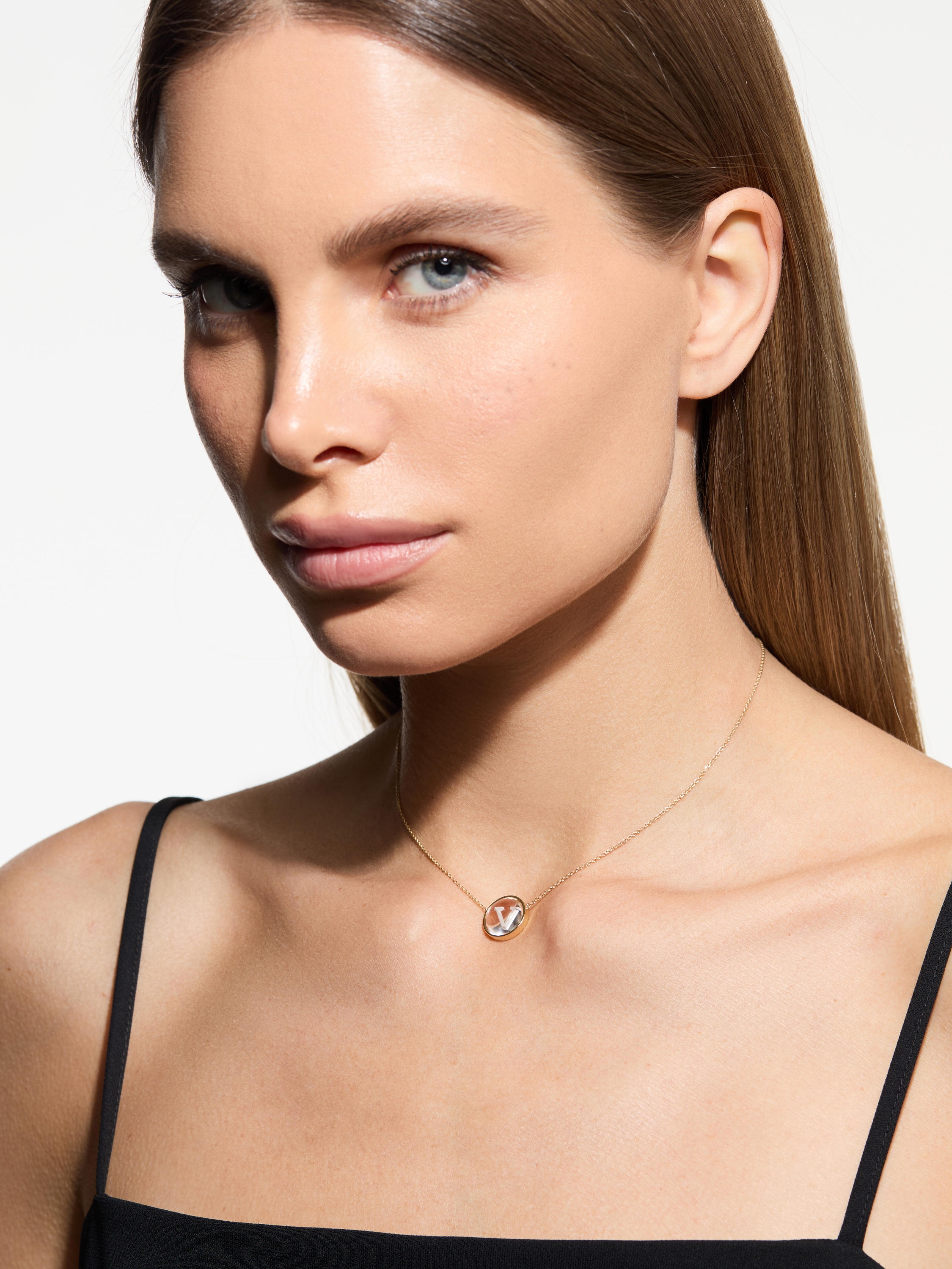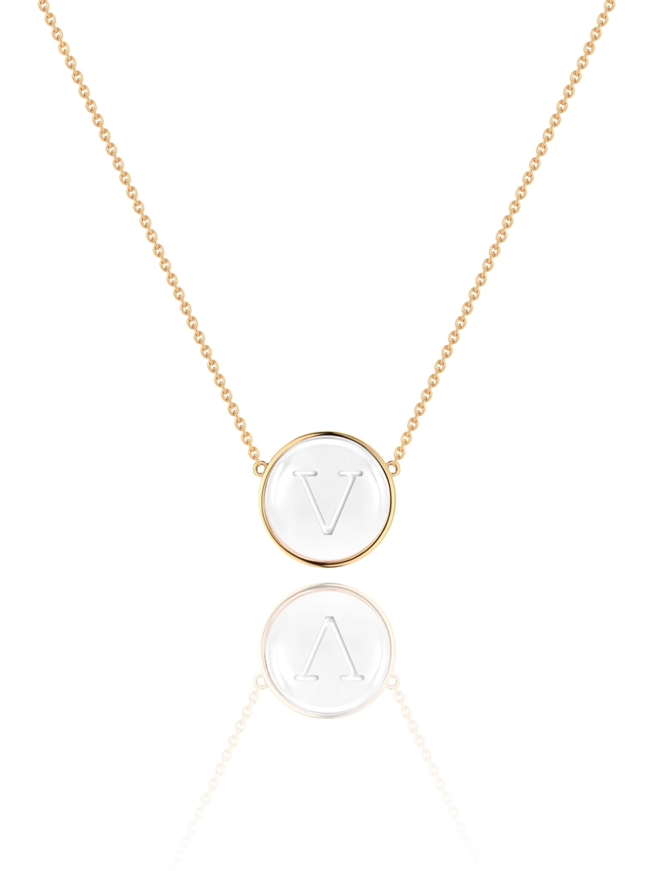 Yellow Gold & Rock Crystal Letter "V" Necklace