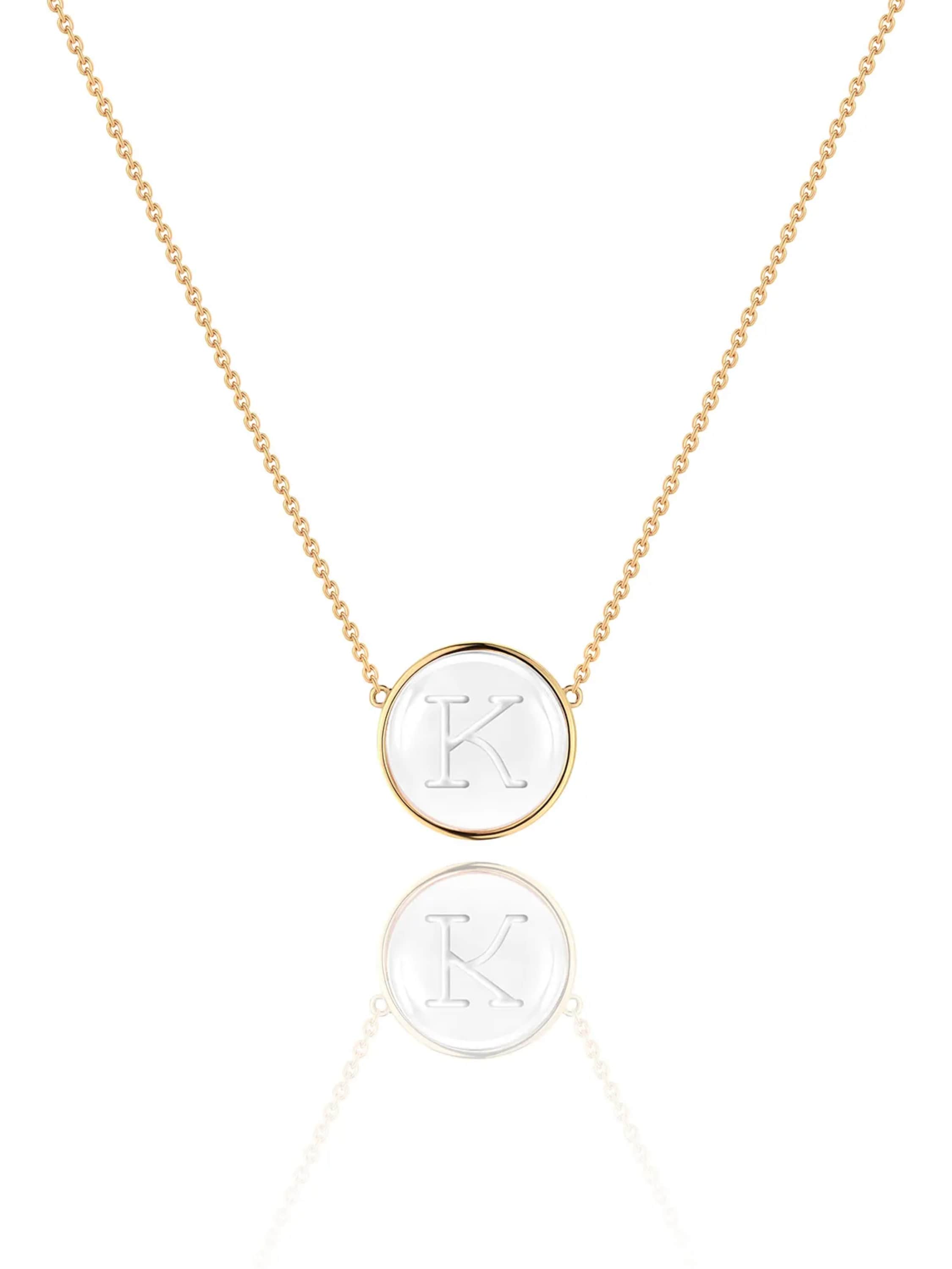 Yellow gold necklace with a K letter pendant and rock crystal