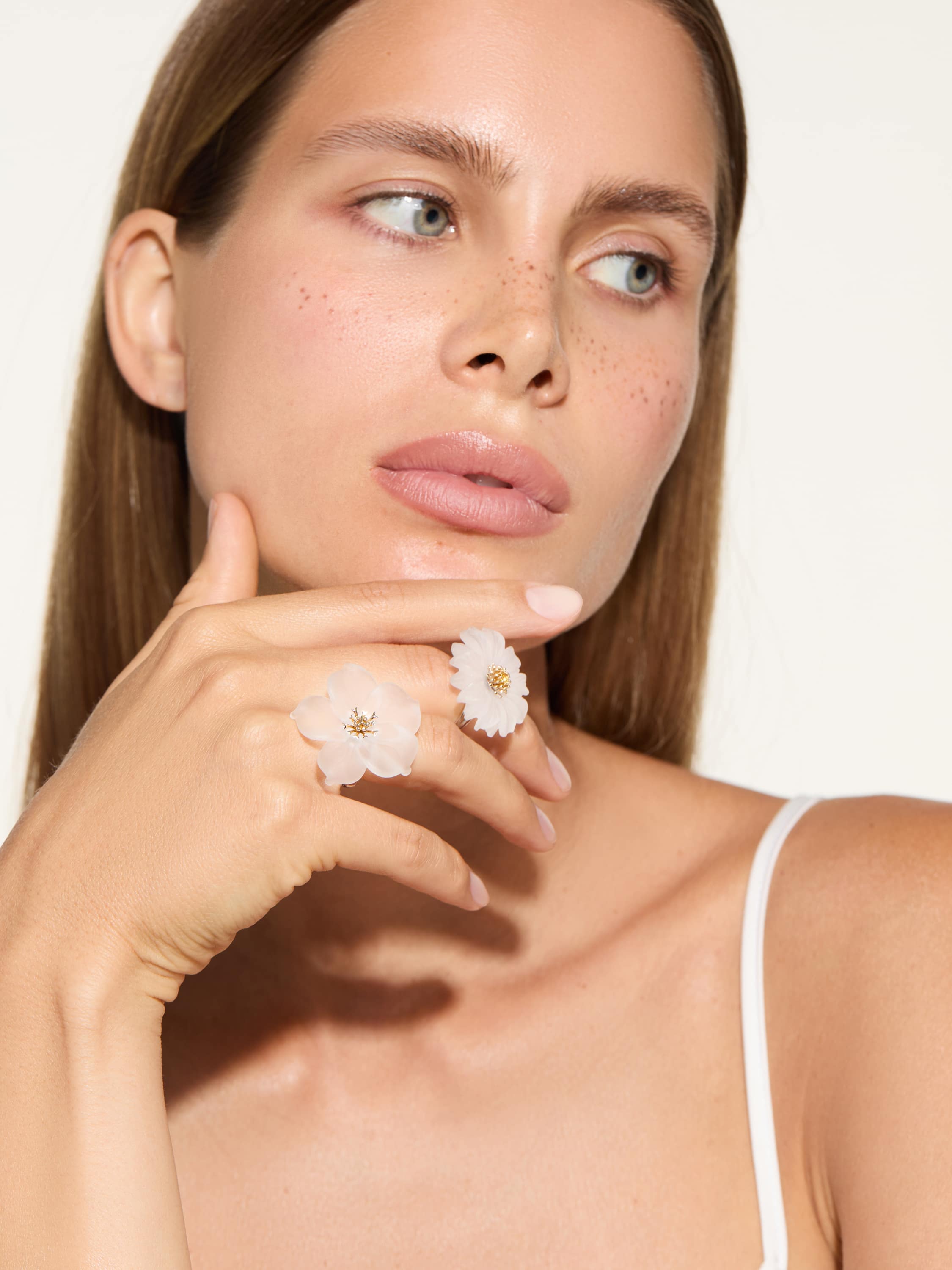Ring with a flower made of carved quartz 25.03 ct and a round-cut citrine weighing 0.11 ct.